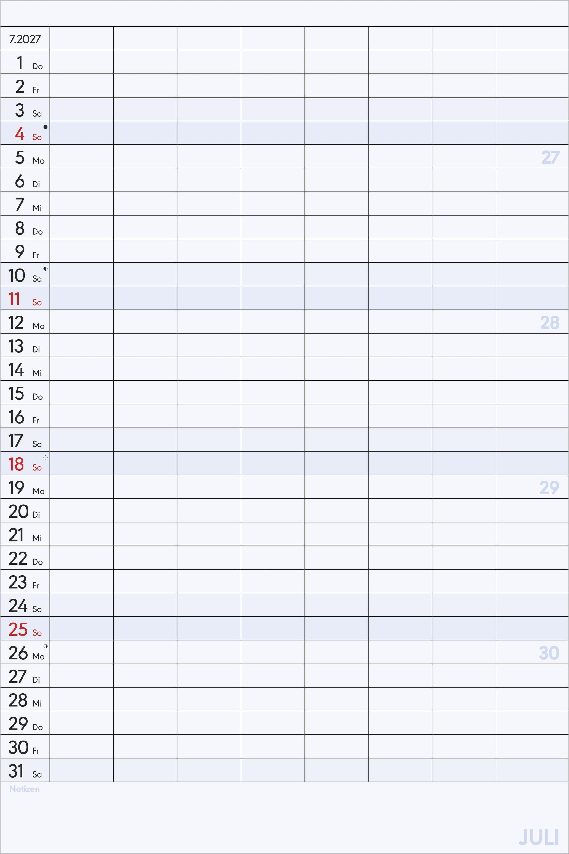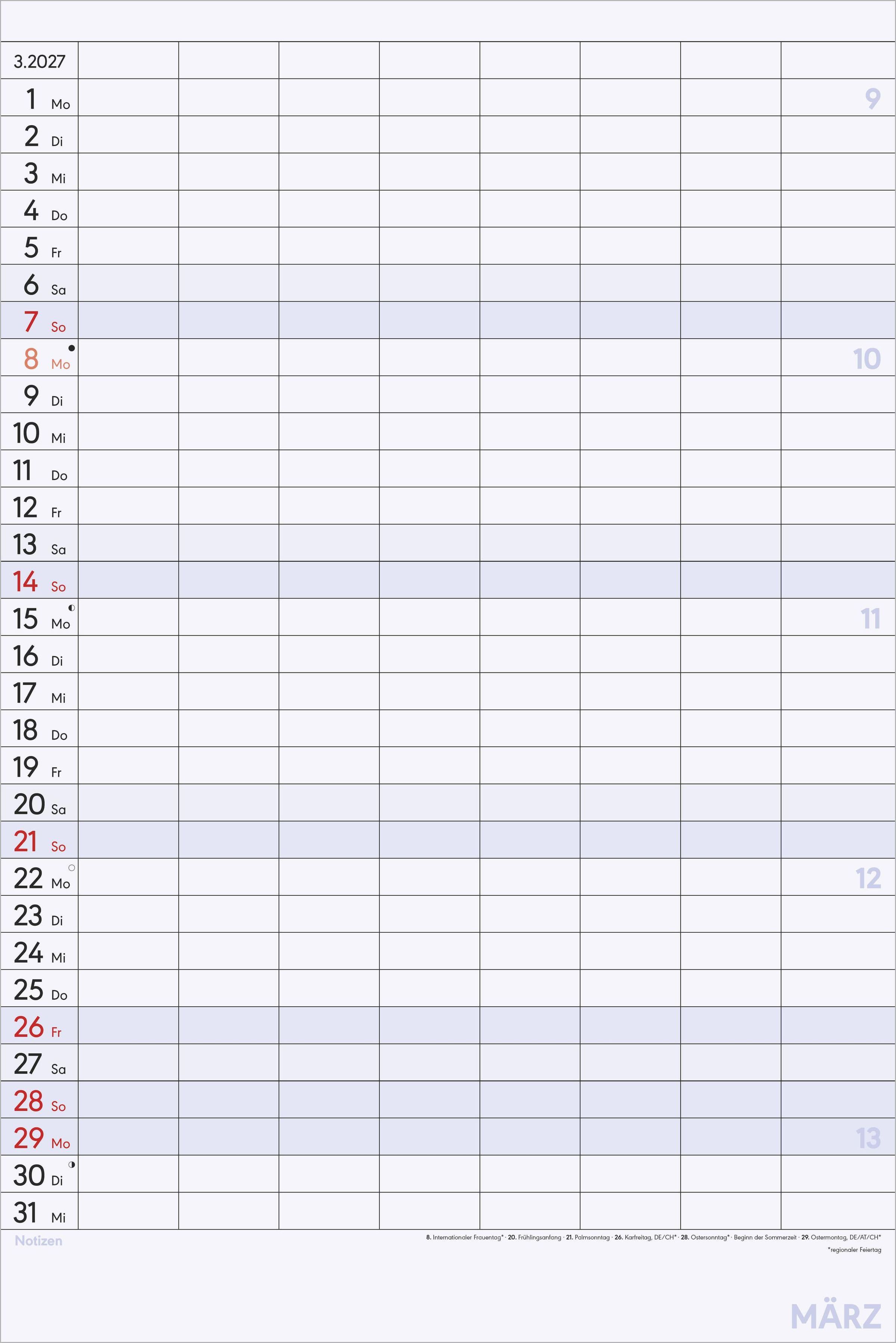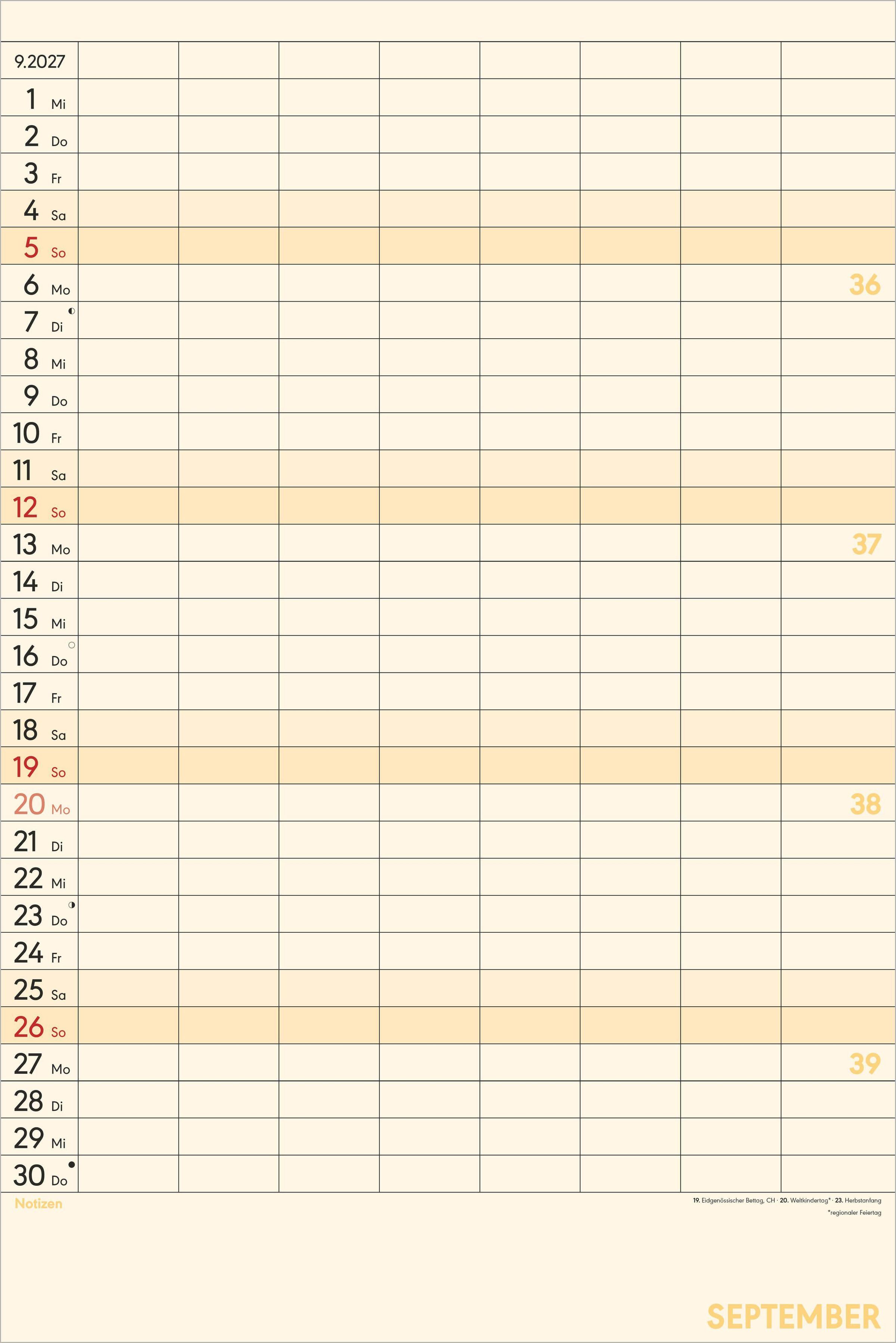 Maximale Übersicht: 8 Spalten für individuelle Einträge -- ideal für Familien, Vereine oder Büro-Teams