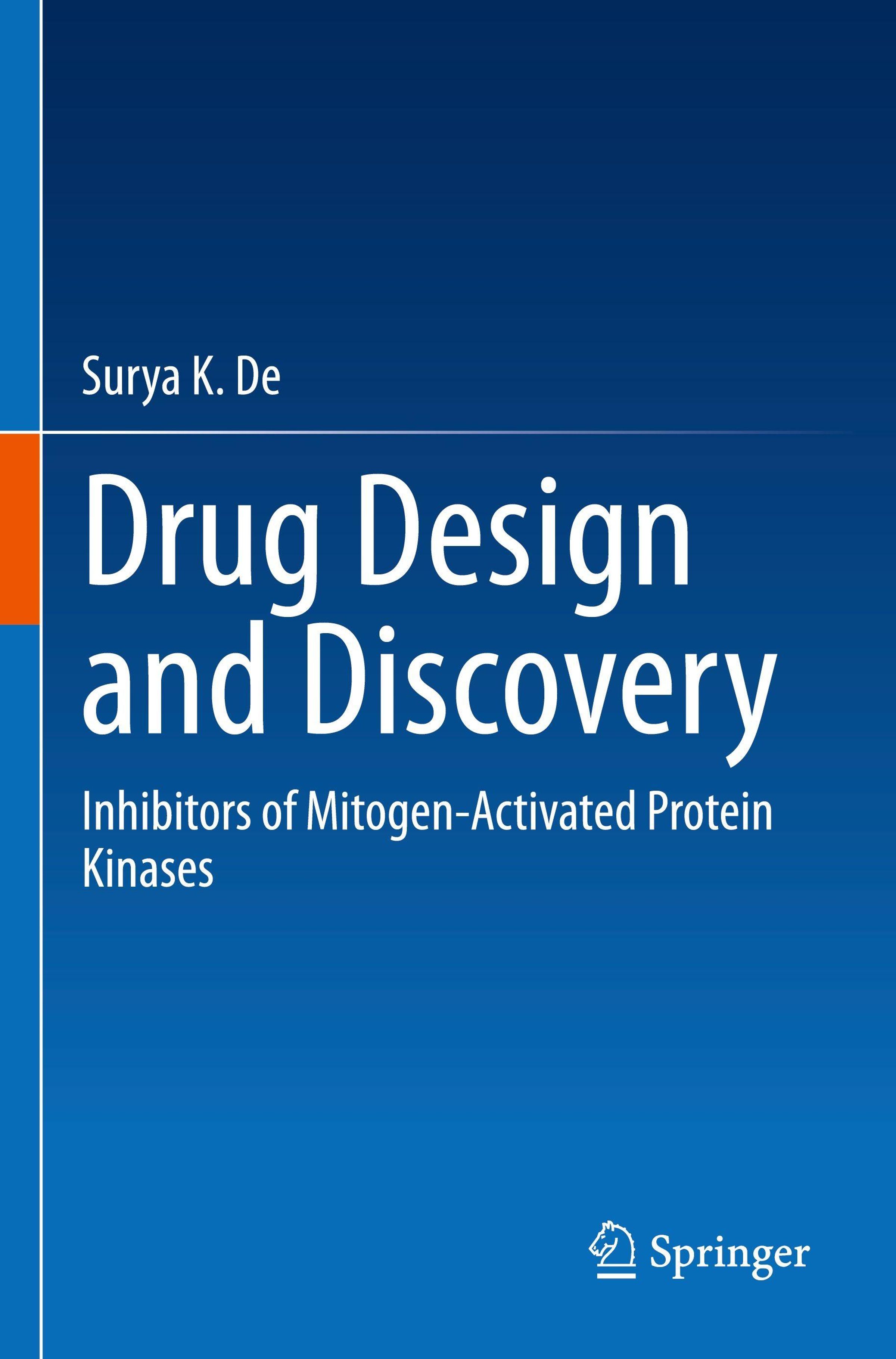 Titel: "Drug Design and Discovery", Untertitel: "Inhibitors of Mitogen-Activated Protein Kinases". Autor: Surya K. De. Blaue und orange Farbtöne. , Buch