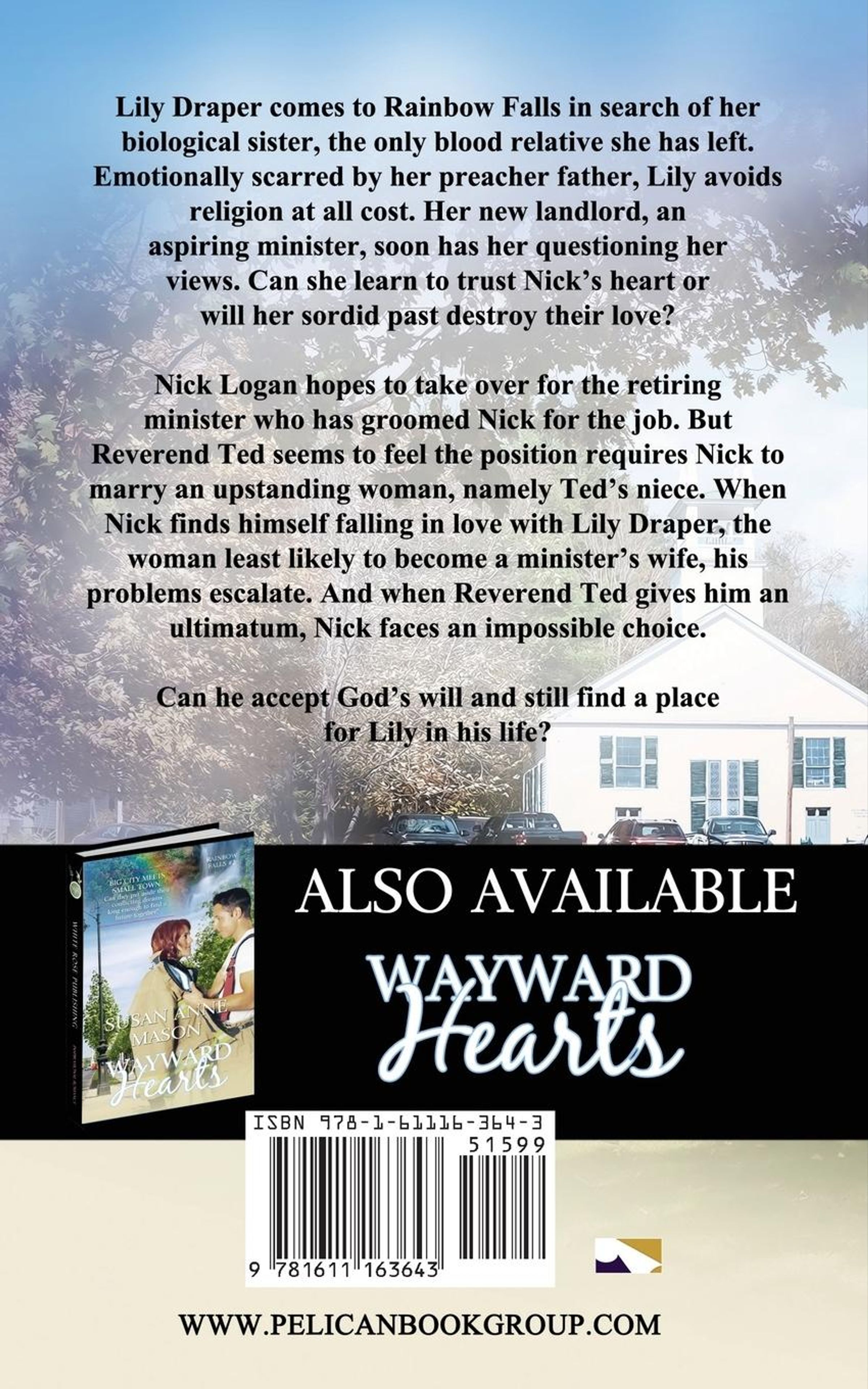 Lily Draper comes to Rainbow Falls in search of her biological sister, the only blood relative she has left. Emotionally scarred by her preacher father, Lily avoids religion at all cost. Her new landlord, an aspiring minister, soon has her questioning her views. Can she learn to trust Nick's heart or will her sordid past destroy their love? Nick Logan hopes to take over for the retiring minister who has groomed Nick for the job. But Reverend Ted seems to feel the position requires Nick to marry an upstanding woman, namely Ted's niece. When Nick finds himself falling in love with Lily Draper, the woman least likely to become a minister's wife, his problems escalate. And when Reverend Ted gives him an ultimatum, Nick faces an impossible choice. Can he accept God's will and still find a place for Lily in his life?