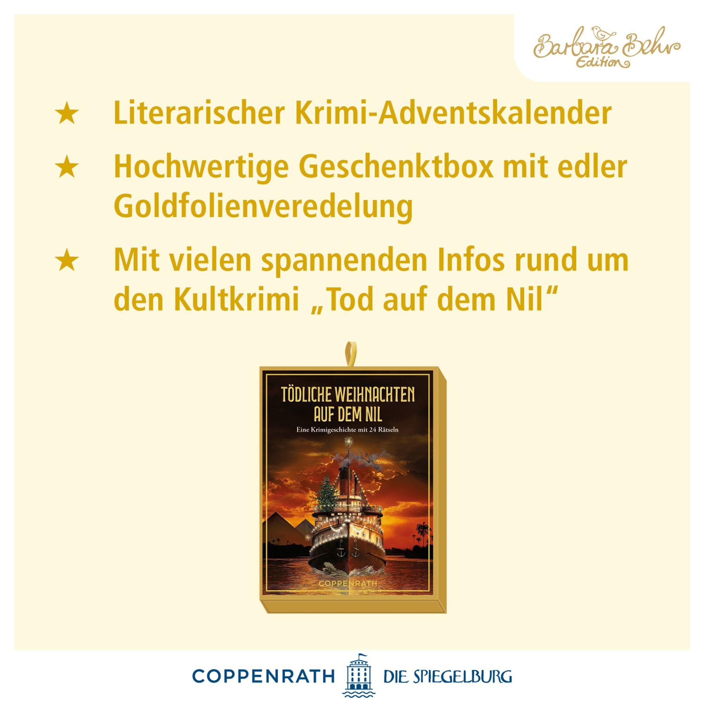 Ein mysteriöser Mord auf einer Nilkreuzfahrt reißt Dr. Grey und Inspector Crabtree aus der festlichen Idylle. Inmitten von Teezeremonien und britischem Small Talk verbirgt sich ein düsteres Geheimnis. Jede Karte enthüllt ein neues Kapitel mit einem raffinierten Rätsel, das tiefer in eine Geschichte aus Täuschung, Spannung und unerwarteten Wendungen führt. Dieser literarische Adventskalender verbindet britische Krimi-Atmosphäre mit täglichem Rätselspaß.