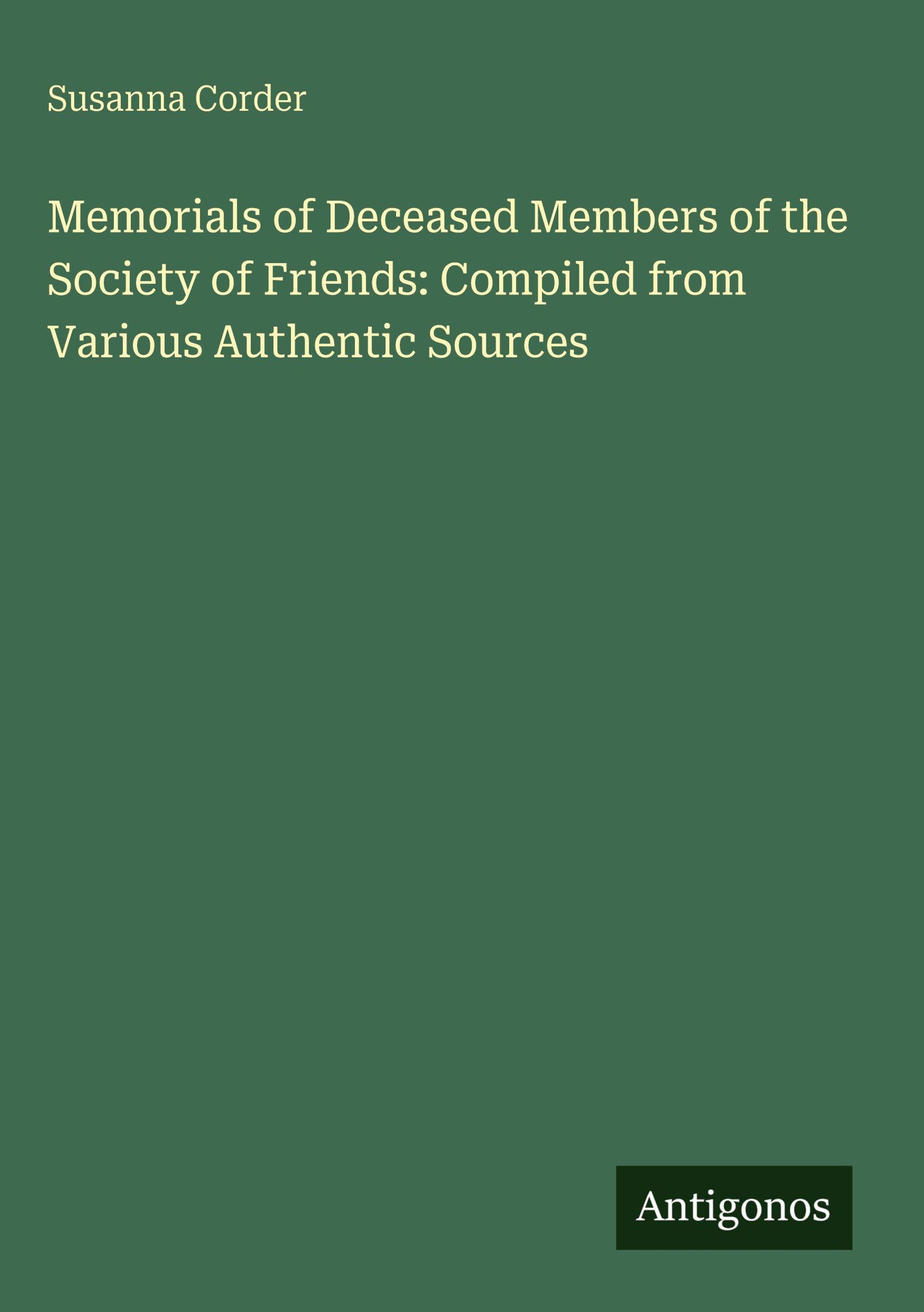 Susanna Corder: Memorials of Deceased Members of the Society of Friends: Compiled from Various Authentic Sources, Gebunden