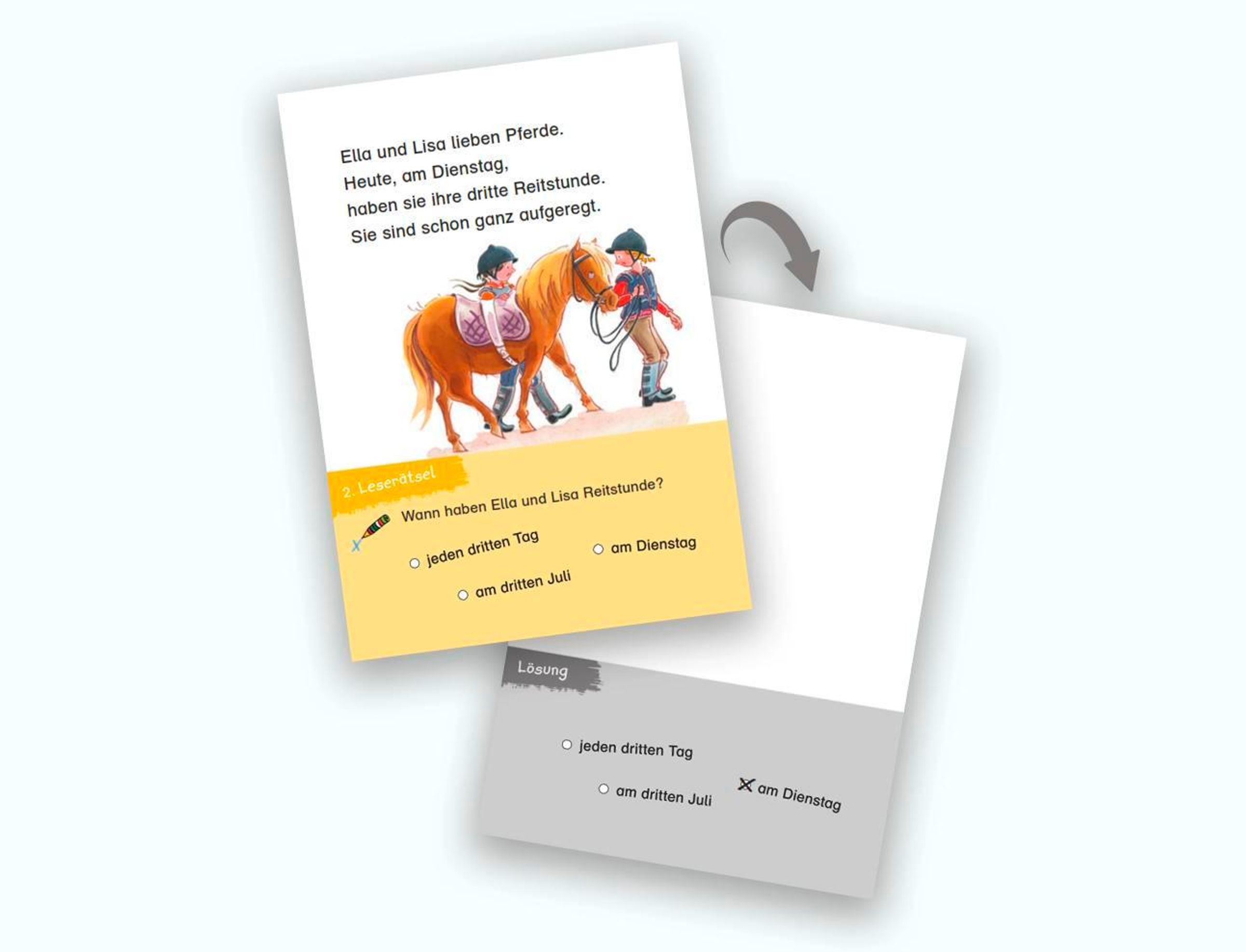 Ob zu Hause auf der Couch, im Urlaub oder ganz woanders: Für diese spannenden Leserätsel zum beliebten Thema "Tiere" ist immer Zeit! In nur 3 Minuten haben die kleinen Leser ein Rätsel gelöst und mittels der Lösung auf der Rückseite herausgefunden, ob sie richtig liegen.
