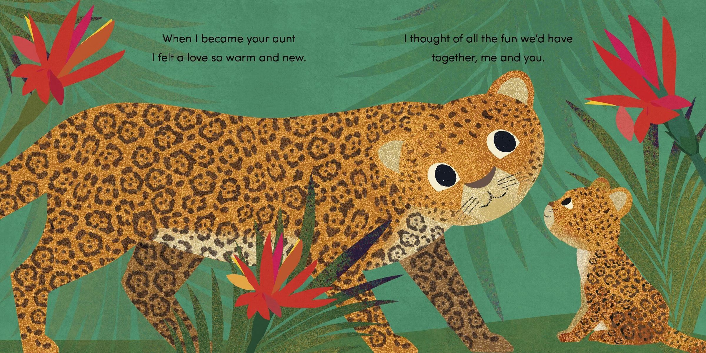 A beautiful, reassuring picture book about the love between a little one and their aunt. Whether paddling down a stream, climbing rocks, or snuggling at bedtime, there's nothing this little jaguar cub loves more than spending time with their aunt.