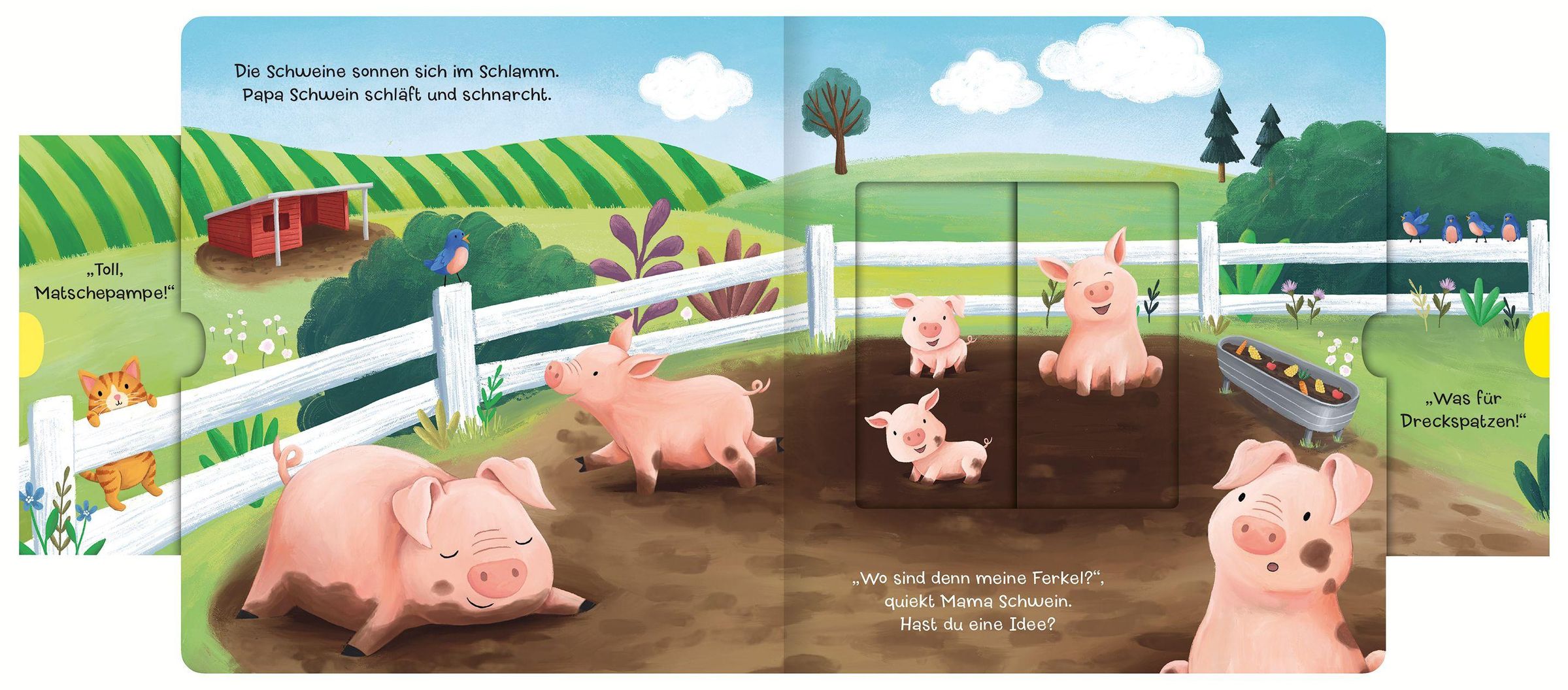 Die kleinen Leserinnen und Leser begleiten ein neugieriges Kätzchen, das auf der Suche nach verschiedenen Tierkindern ist. Mit großen, robusten Schiebeelementen können Kinder spielerisch die Tiere wie Kühe, Schweine, Schafe und Hühner entdecken.