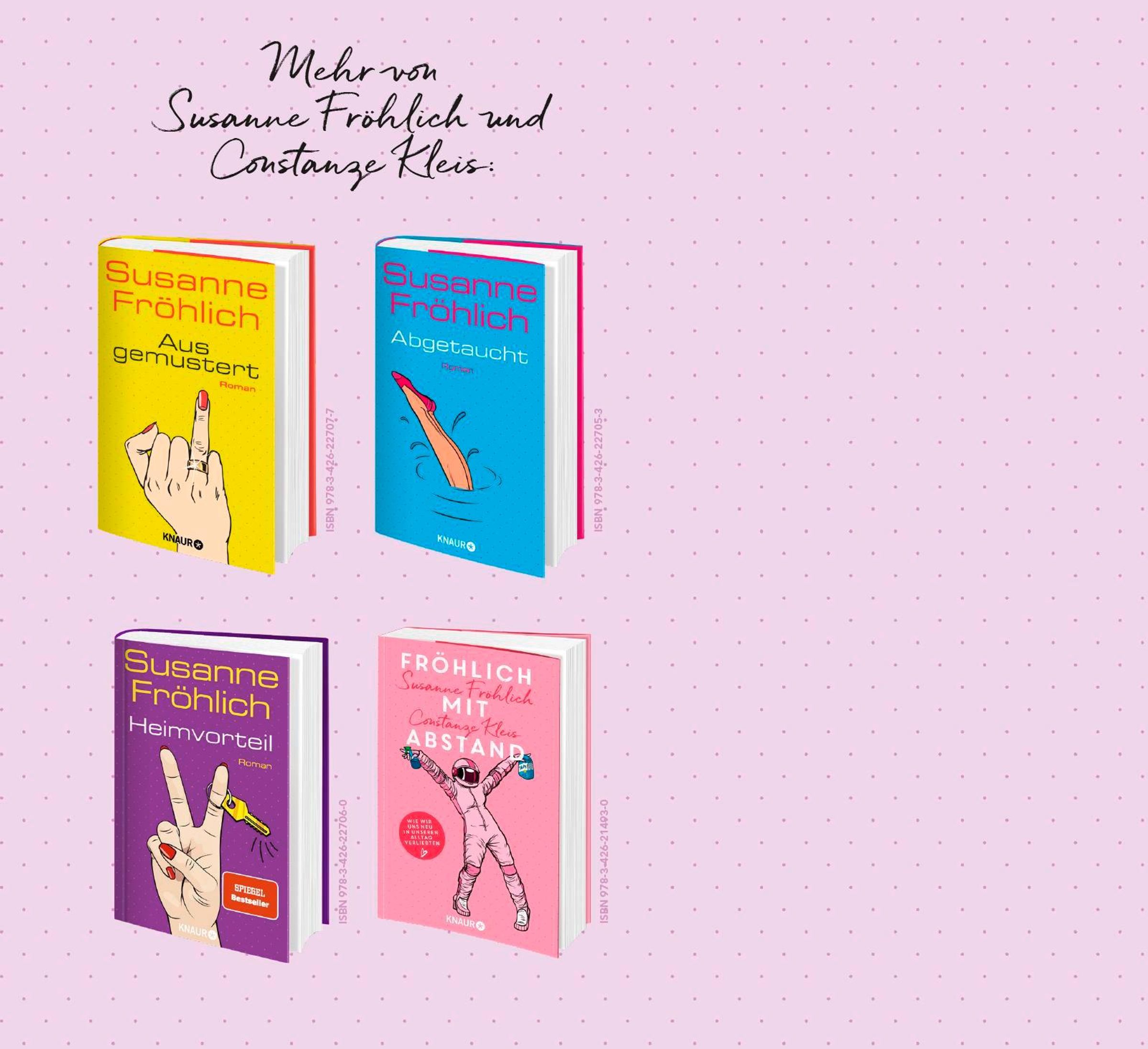 Susanne Fröhlich, geboren 1962 in Frankfurt am Main, ist erfolgreiche Fernseh- und Rundfunkmoderatorin. Sie hat mehrere Sachbücher und Romane geschrieben, die alle zu Bestsellern wurden. Susanne Fröhlich lebt in der Nähe von Frankfurt am Main.Biografie (Constanze Kleis)