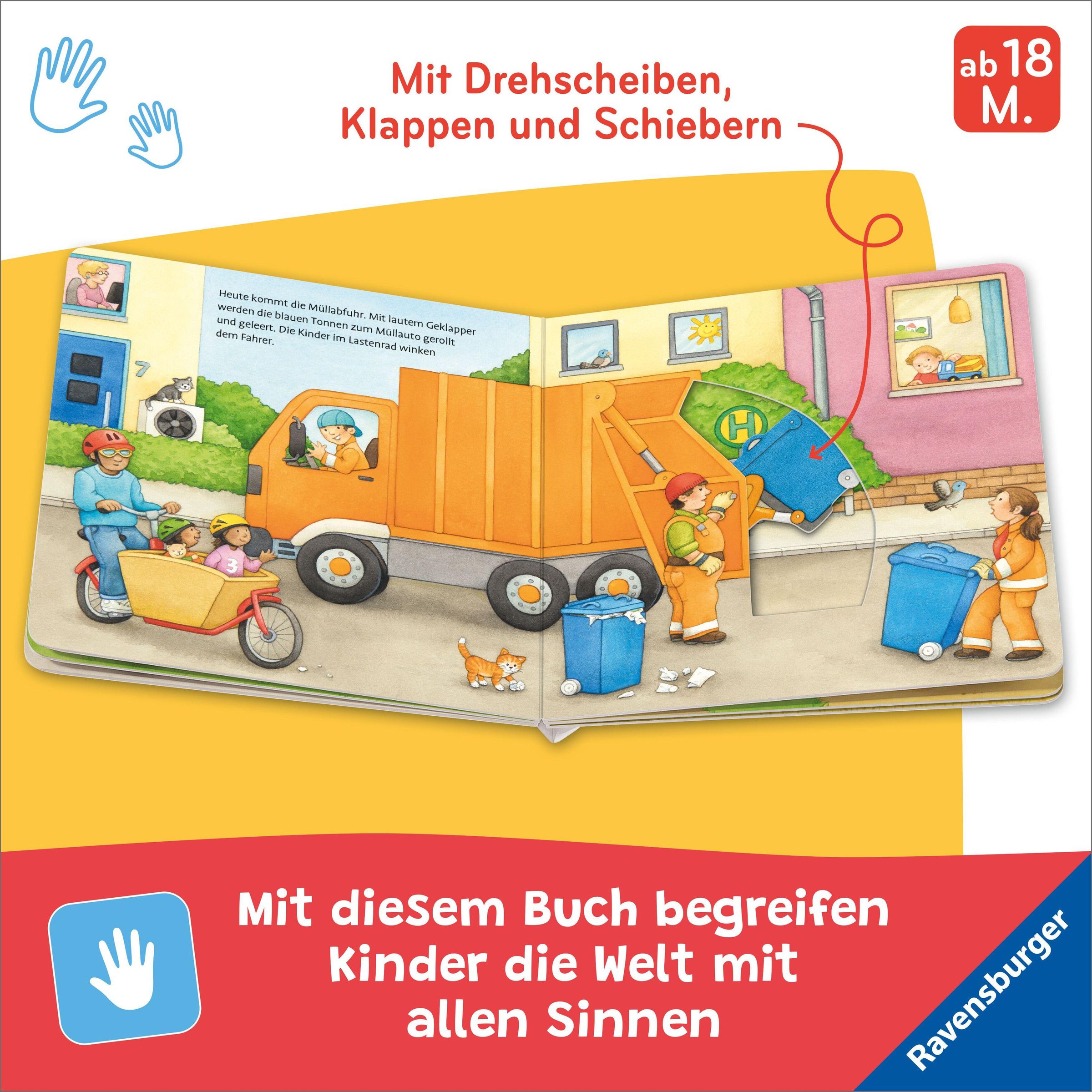 Kleinkinder lieben Fahrzeuge, egal ob Feuerwehrauto, Bagger oder Müllabfuhr! In diesem Spielbuch können Kinder ab 18 Monaten auf jeder Seite mithelfen und selbst aktiv werden. Bewege die Baggerschaufel, leere die Mülltonne und tuckere mit dem Traktor übers Feld. Große Drehscheiben, spannende Klappen und stabile Schieber garantieren lang anhaltenden Spielspaß! Und ganz nebenbei fördert das Buch den Tastsinn und die Feinmotorik.