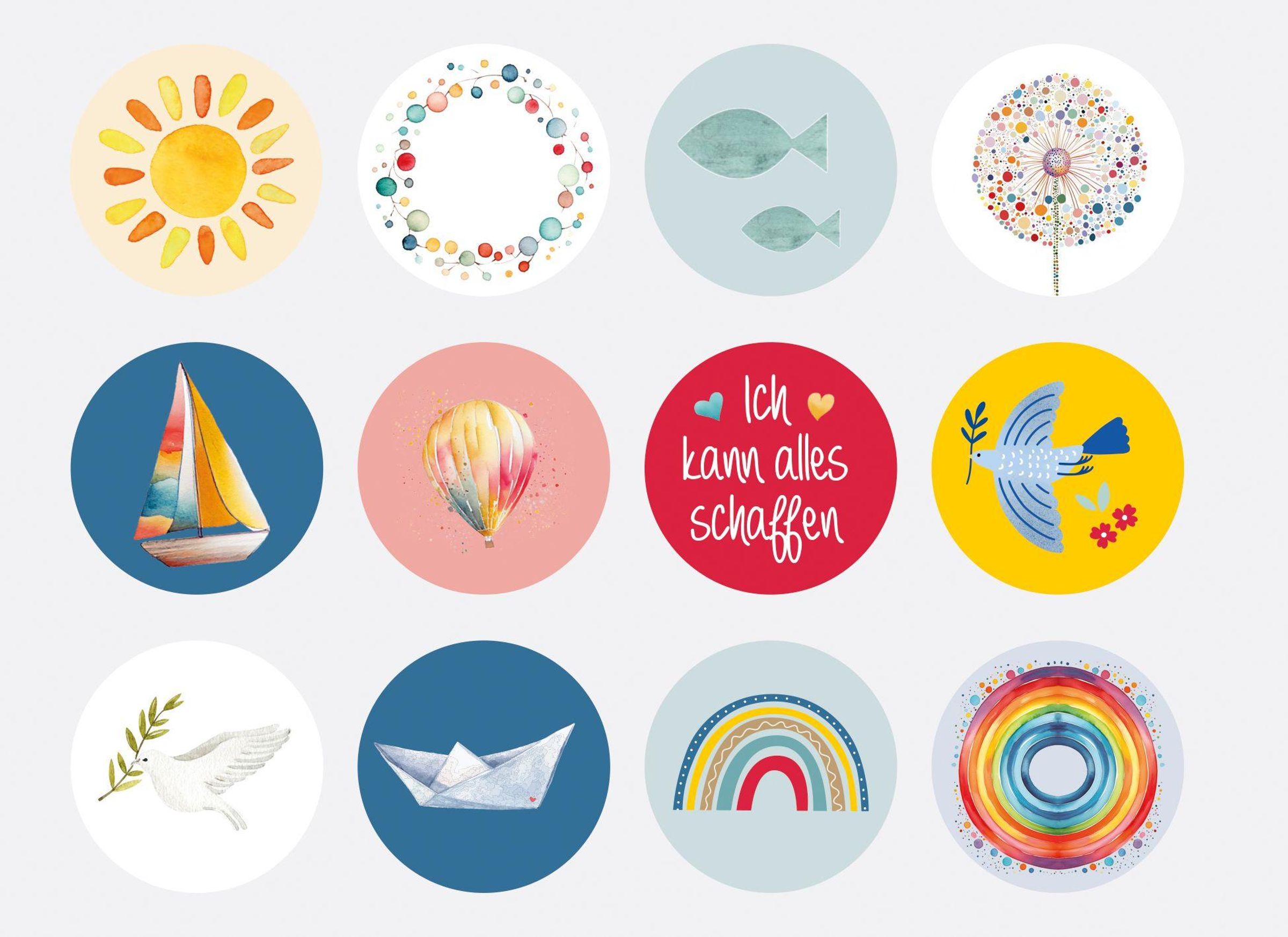 Kreative Extras für individuelle Gestaltung: Mit den beiliegenden Stickern, Geschenkanhängern und heraustrennbare Motivpapieren kann das Album ganz nach Belieben verziert und verschönert werden. Zwei praktische Einstecktaschen bieten Platz für kleine Andenken. Außerdem enthält das Album tolle Bastelvorlagen, zum Beispiel für einen Hosentaschensegen, eine Erinnerungsbox oder ein Mini-Mutmachbuch.