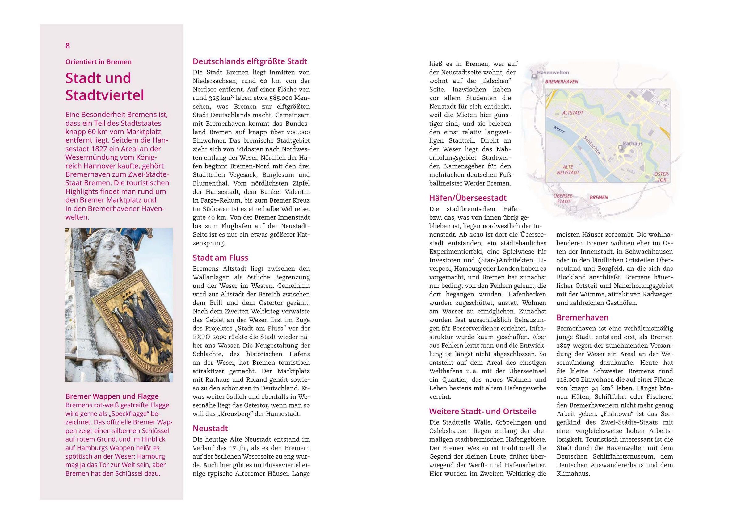 Sven Bremer, ein gebürtiger Bremer, schreibt über Bremen. Auf 184 Seiten mit 85 Farbfotos zeigt er Ihnen die Vielfalt der Hansestadt. Dank zehn Karten und Plänen sowie herausnehmbarem Stadtplan im Maßstab 1: 6.500 finden Sie sich in Deutschlands elftgrößter Stadt so gut zurecht wie die Einheimischen.