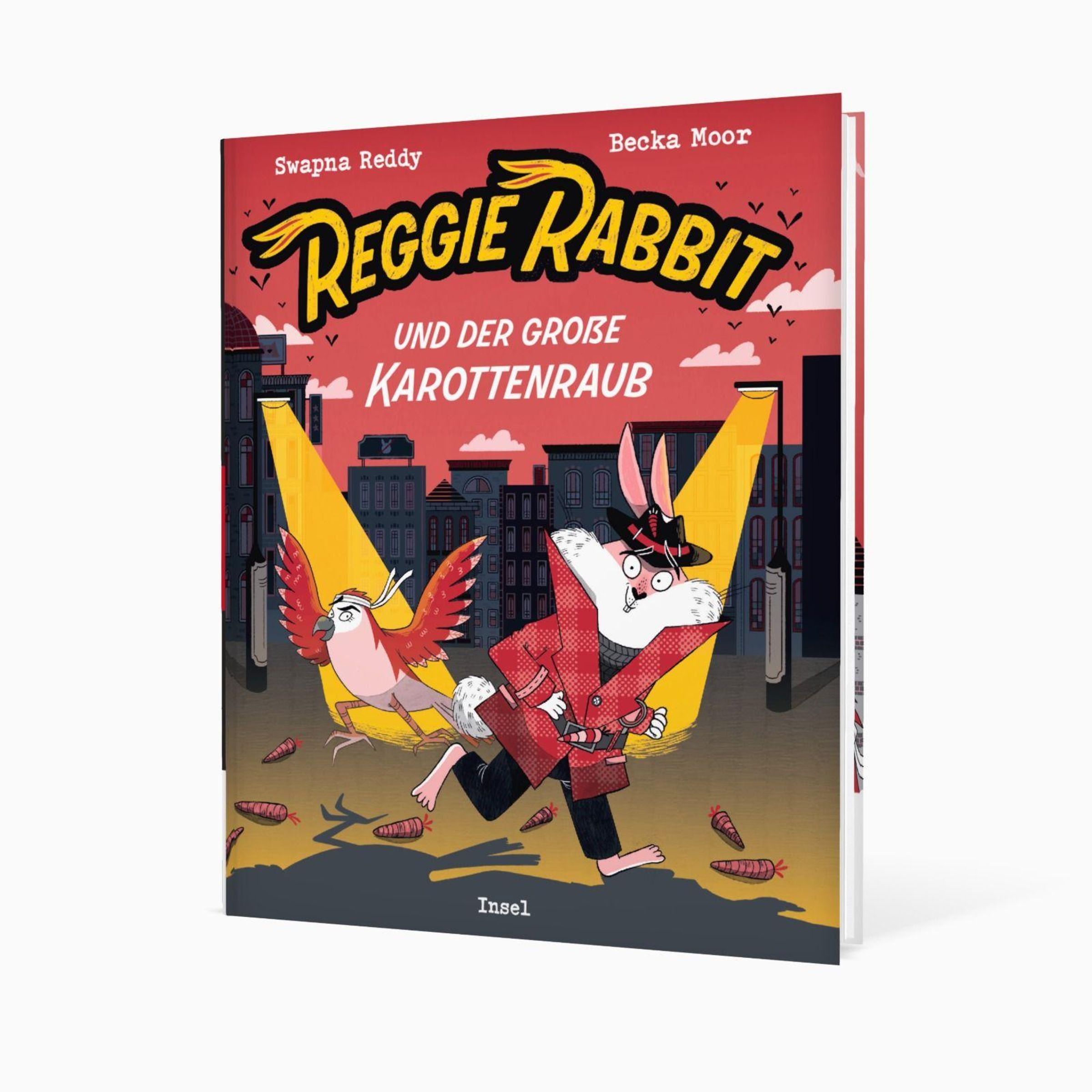 Reggie Rabbit will der beste Detektiv der Welt sein, genau wie sein großes Vorbild Detektiv Fuchs. Der passende Detektivmantel hängt schon an der Garderobe. Allerdings gibt es im beschaulichen Klein Viehdorf nicht viel zu ermitteln und seine Eltern wollen lieber, dass er einmal den Gemüsestand der Familie übernimmt. Doch auf einmal verschwinden wie von Zauberhand riesige Mengen Karotten von den Schiffen am Hafen und den Kaninchen in Klein Viehdorf droht das Essen auszugehen. Jetzt ist Reggies Spürnase gefragt! Mithilfe von Oma Lavendel und seiner Freundin Pieps beginnt Reggie zu ermitteln. Der Fall führt ihn bis in die dunklen Seitenstraßen der ruppigen Stadt Bärenburg City. Kann ein kleines Kaninchen den großen Karottenraub aufklären?