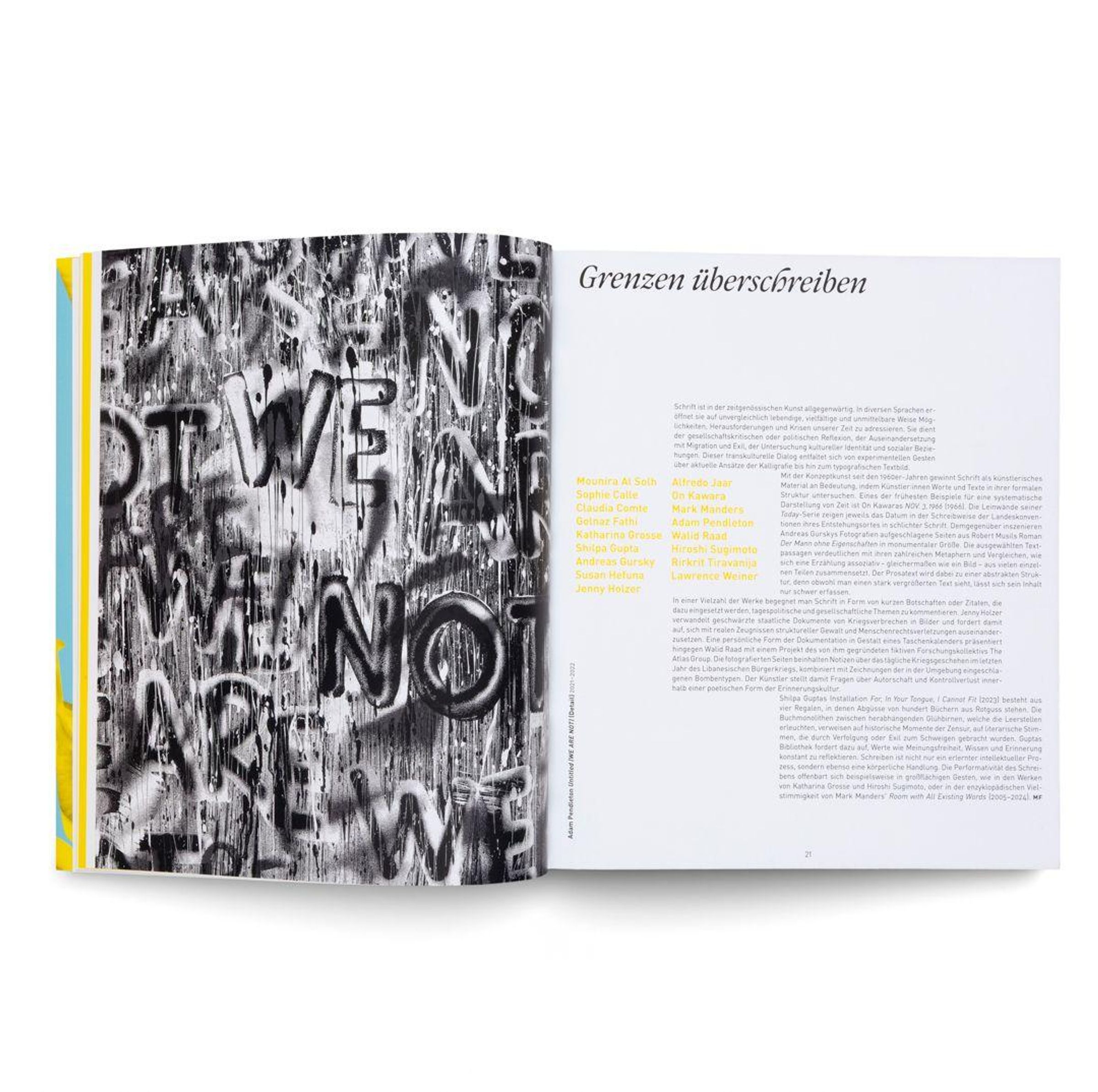 Der Katalog erscheint anlässlich der gleichnamigen Sonderausstellung und erkundet das Phänomen von Schrift und Bild mit Beiträgen über die Geschichte geschriebener Kunst, deren politisches Potenzial sowie gegenwärtigen Perspektiven auf Kalligrafie und Typografie.