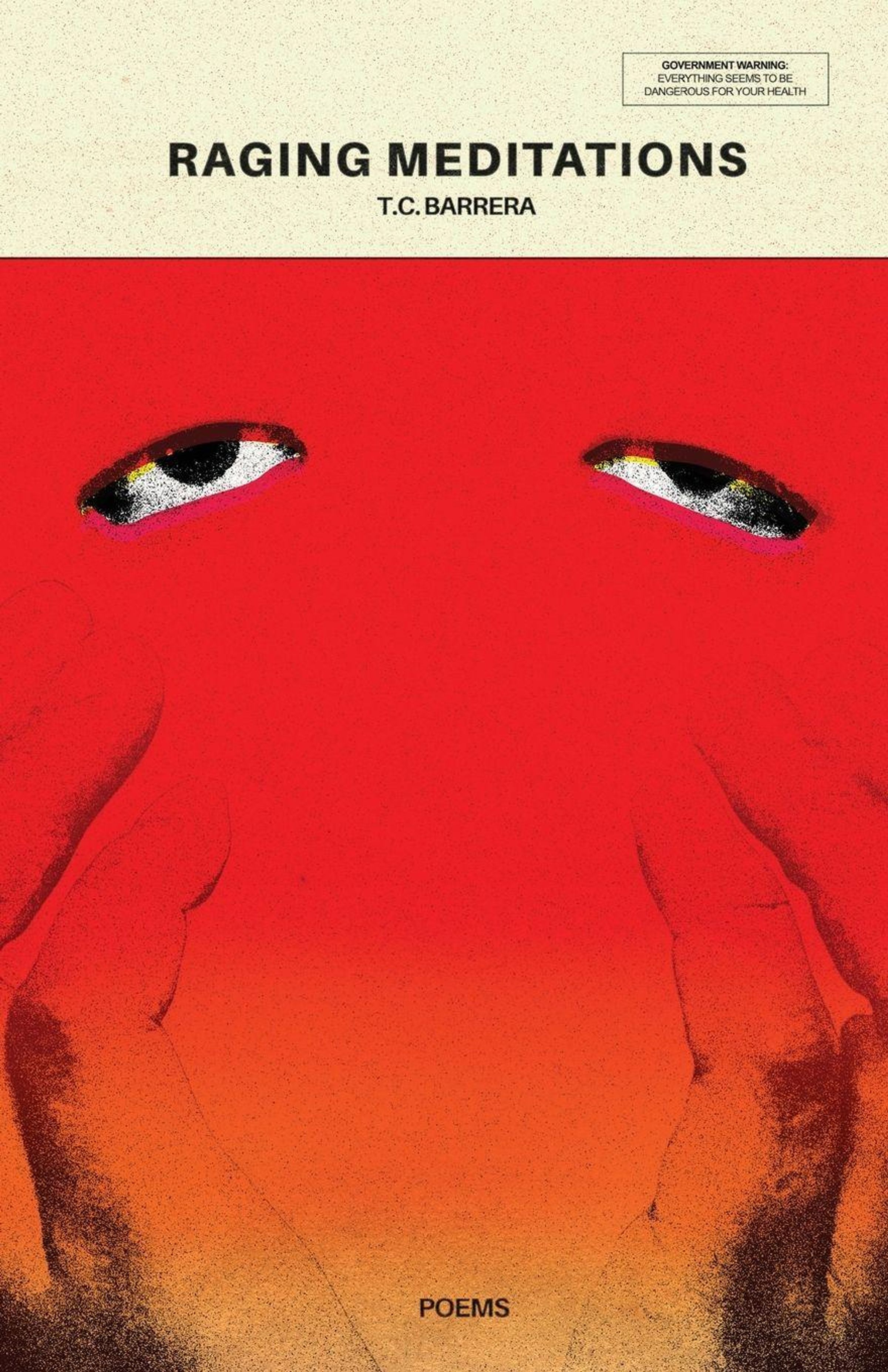 "Raging Meditations" von T.C. Barrera; darunter "Poems". Illustration: Zwei Augen in rotem Hintergrund mit Händen., Buch