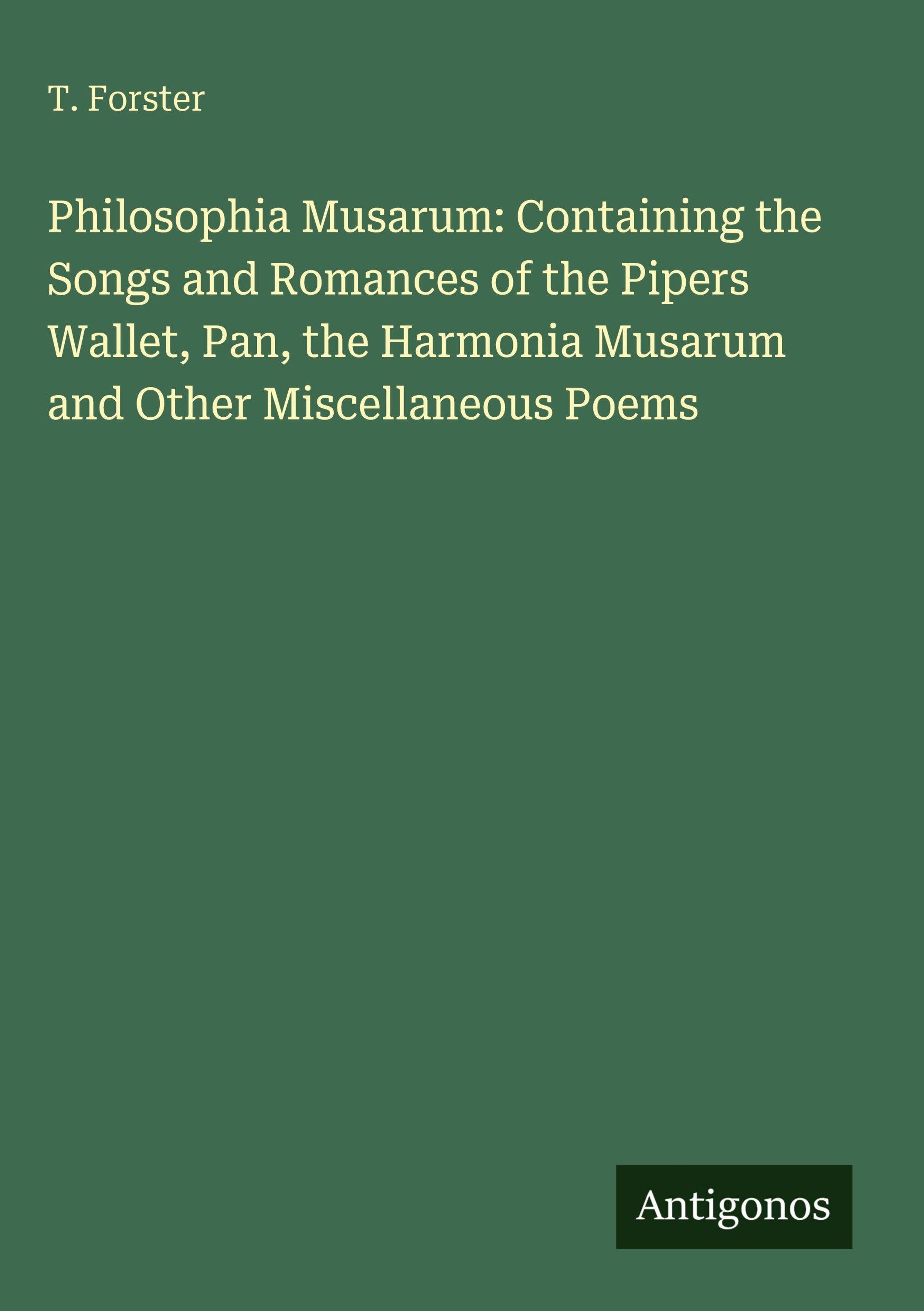 T. Forster: Philosophia Musarum: Containing the Songs and Romances of the Pipers Wallet, Pan, the Harmonia..., Gebunden