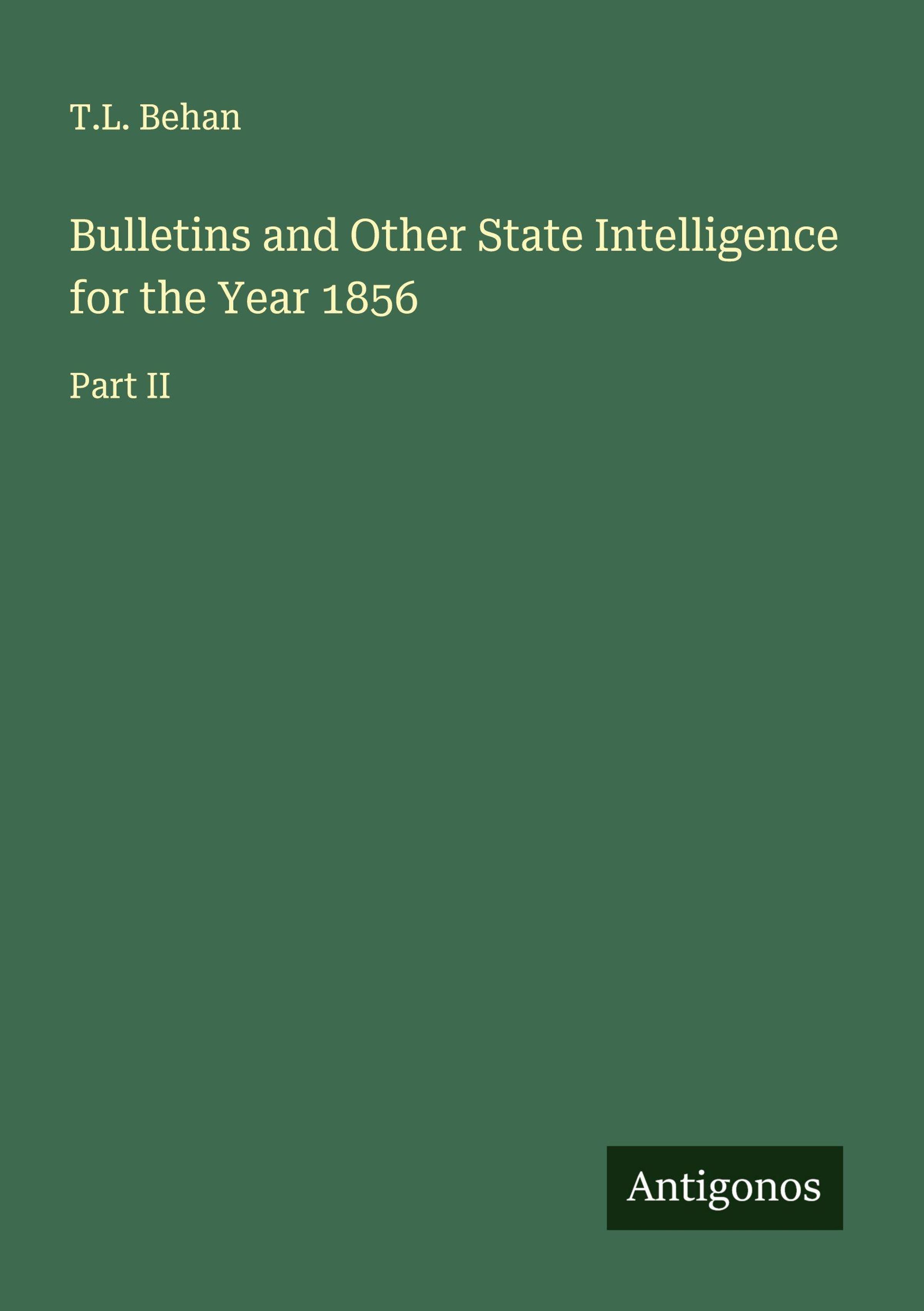 T. L. Behan: Bulletins and Other State Intelligence for the Year 1856, Kartoniert / Broschiert