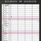Dieser Wandkalender hilft Ihnen dabei alle wichtigen Termine stets im Blick zu haben. Mit vier Spalten zum Eintragen von Geburtstagen, Terminen und Erinnerungen bietet dieser Jahreskalender viel Platz für Notizen. Dadurch ist es auch möglich mehrere Termine in einen Tag zu schreiben. Er eignet sich perfekt für die Organisation des Ehe- oder Familienlebens. Neben dem gesamten Kalenderjahr enthält der Wandplaner auch eine Vorschau bis März des Folgejahres.