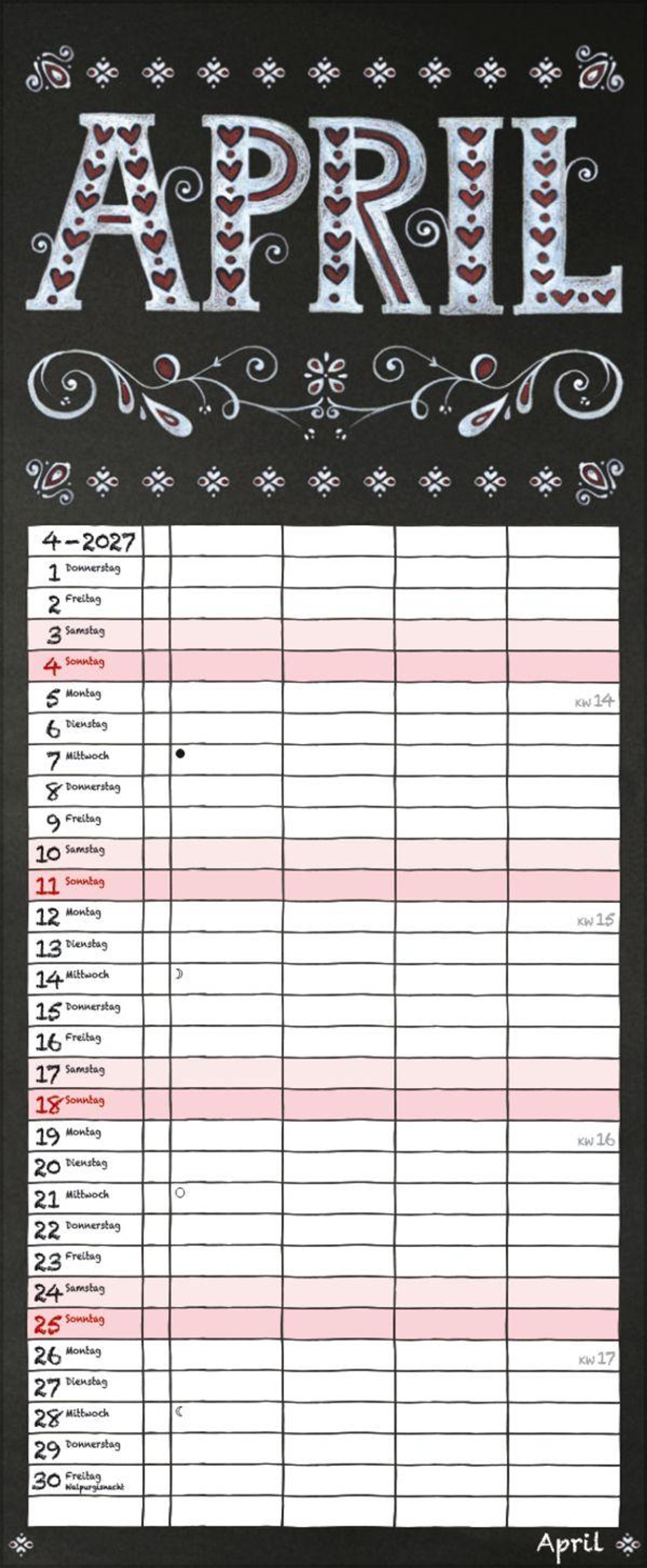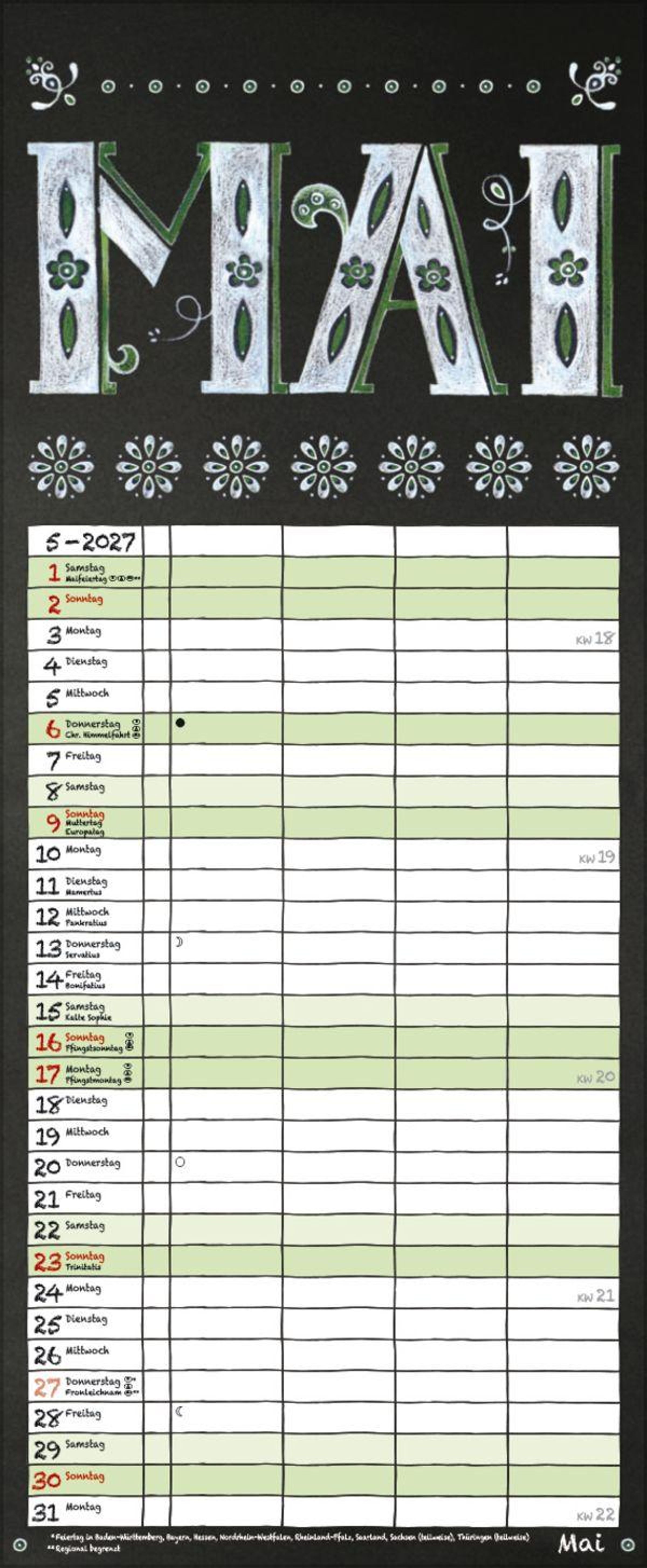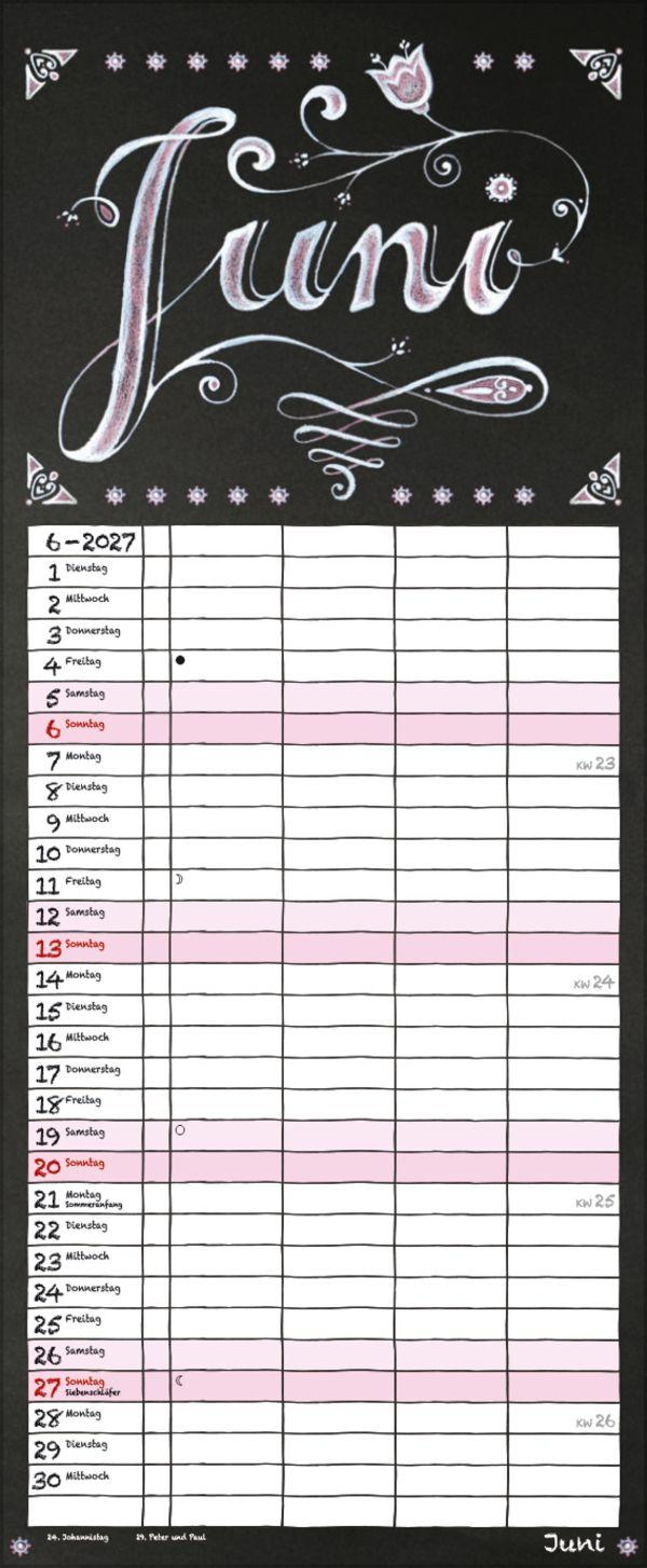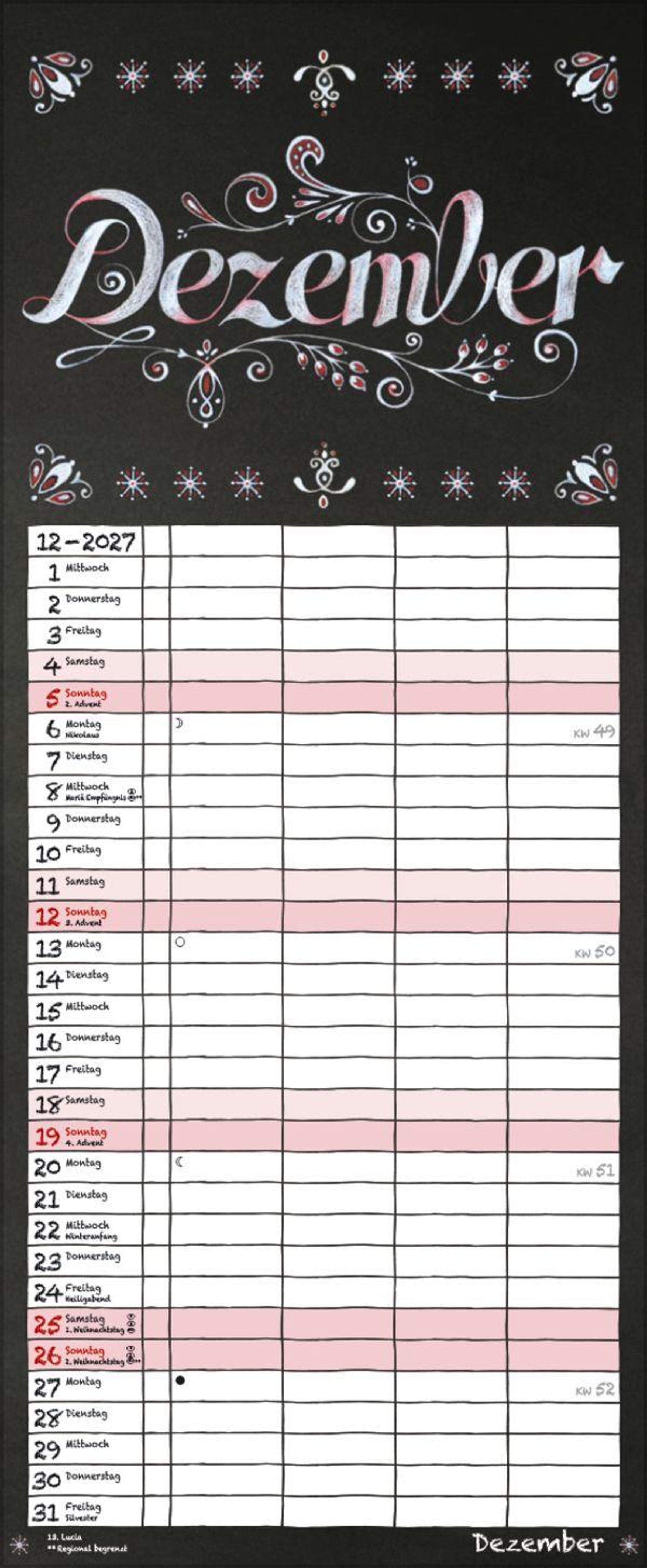 - Typo Art Familienkalender mit 4 breiten Spalten in Tafeloptik. Hochwertiger Familienplaner mit Ferienterminen, Vorschau bis März 2027.