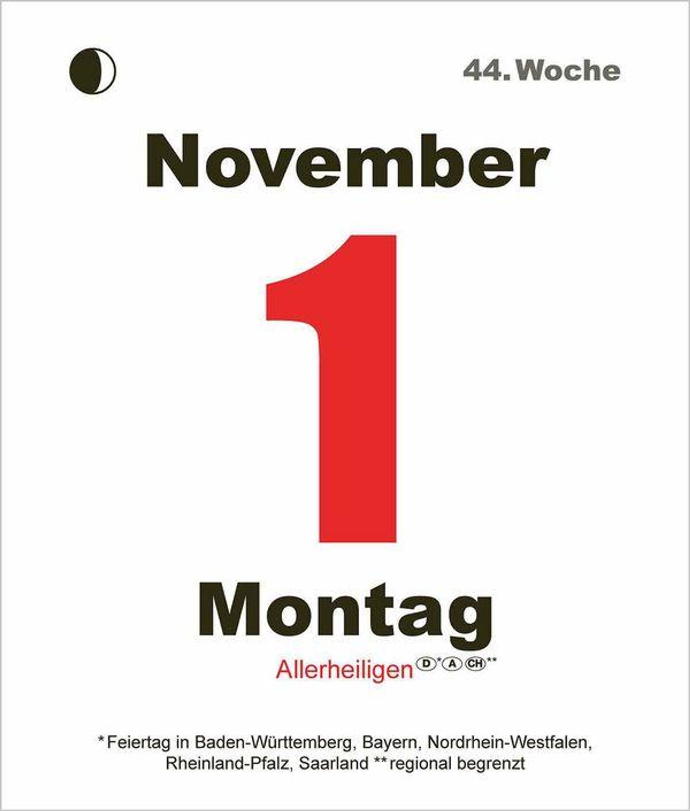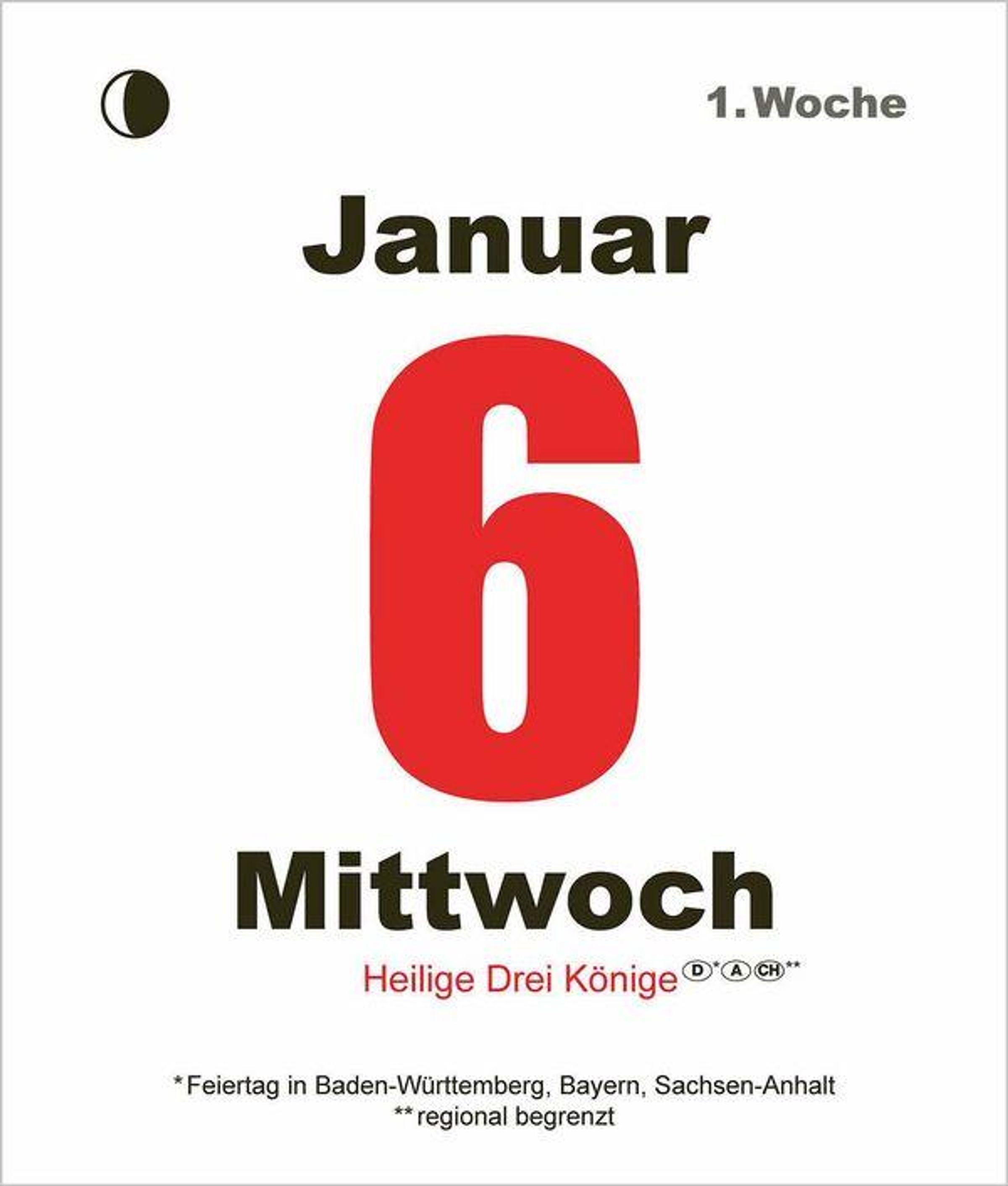 Der aufstellbare Tages-Abreißkalender im Miniformat mit 9 x 12 cm hat große und gut lesbare Zahlen, welche an den Sonn- und Feiertagen jeweils rot eingefärbt sind.