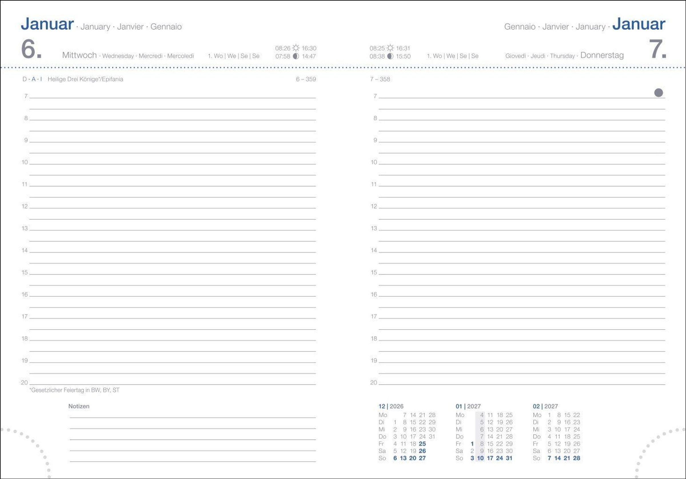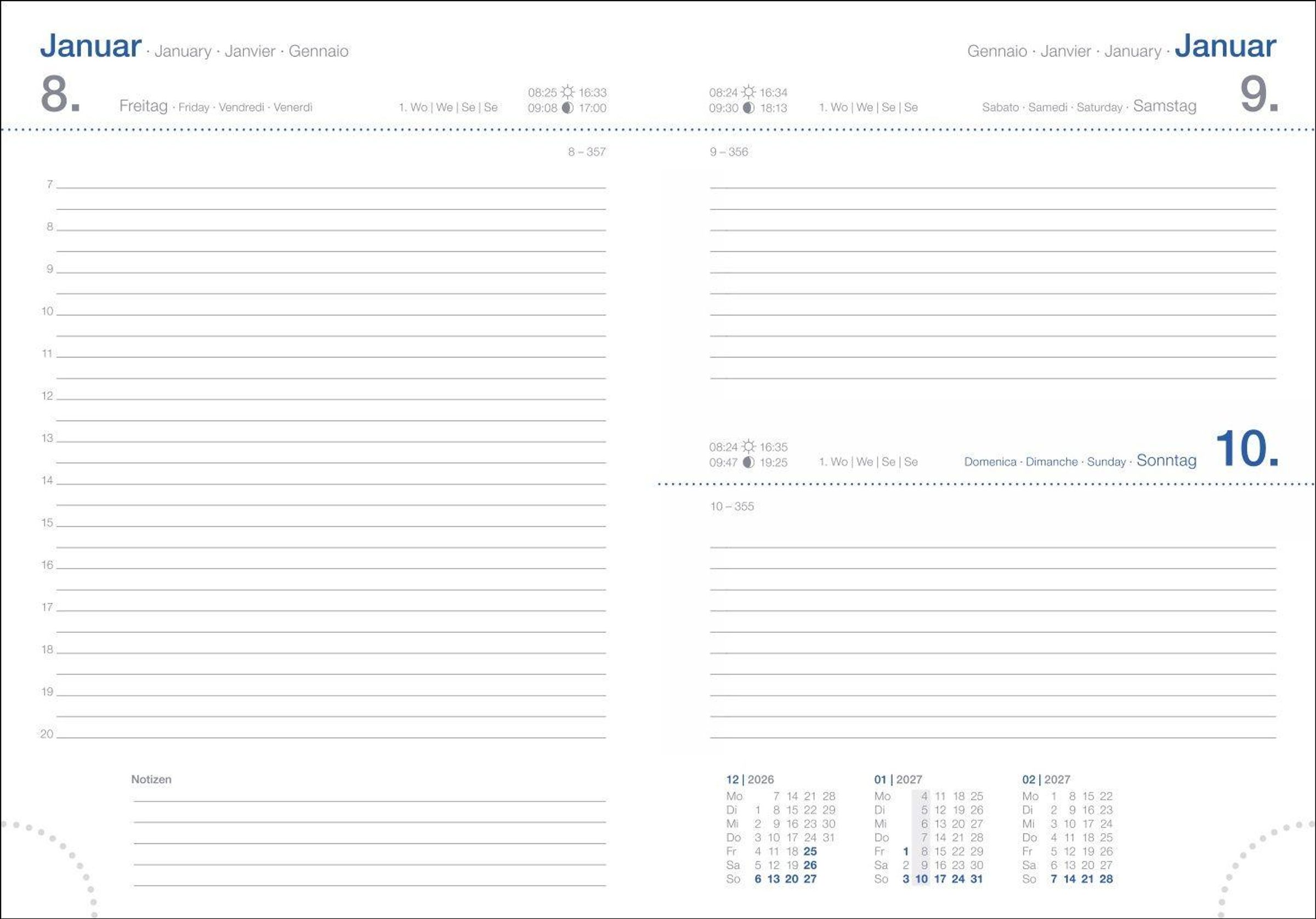 Ein Allrounder für alle wichtigen Termine im Jahr: die handliche Organisationshilfe mit viersprachigem Kalendarium für Meetings oder die Reiseplanung