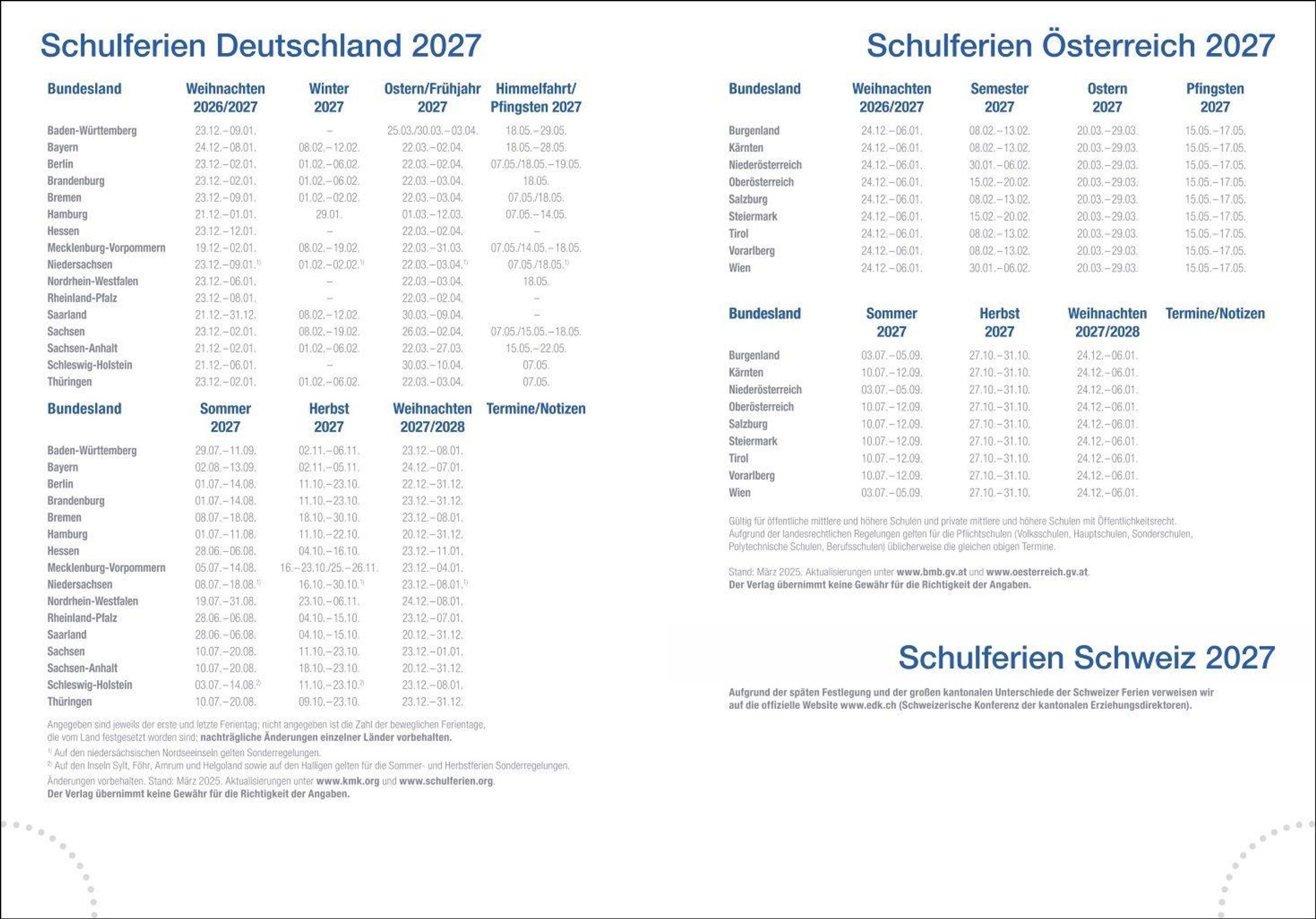 Immer die Übersicht bewahren dank Tageskalendarium, Schulferien, Jahresübersicht, To-do-Listen und vielem mehr