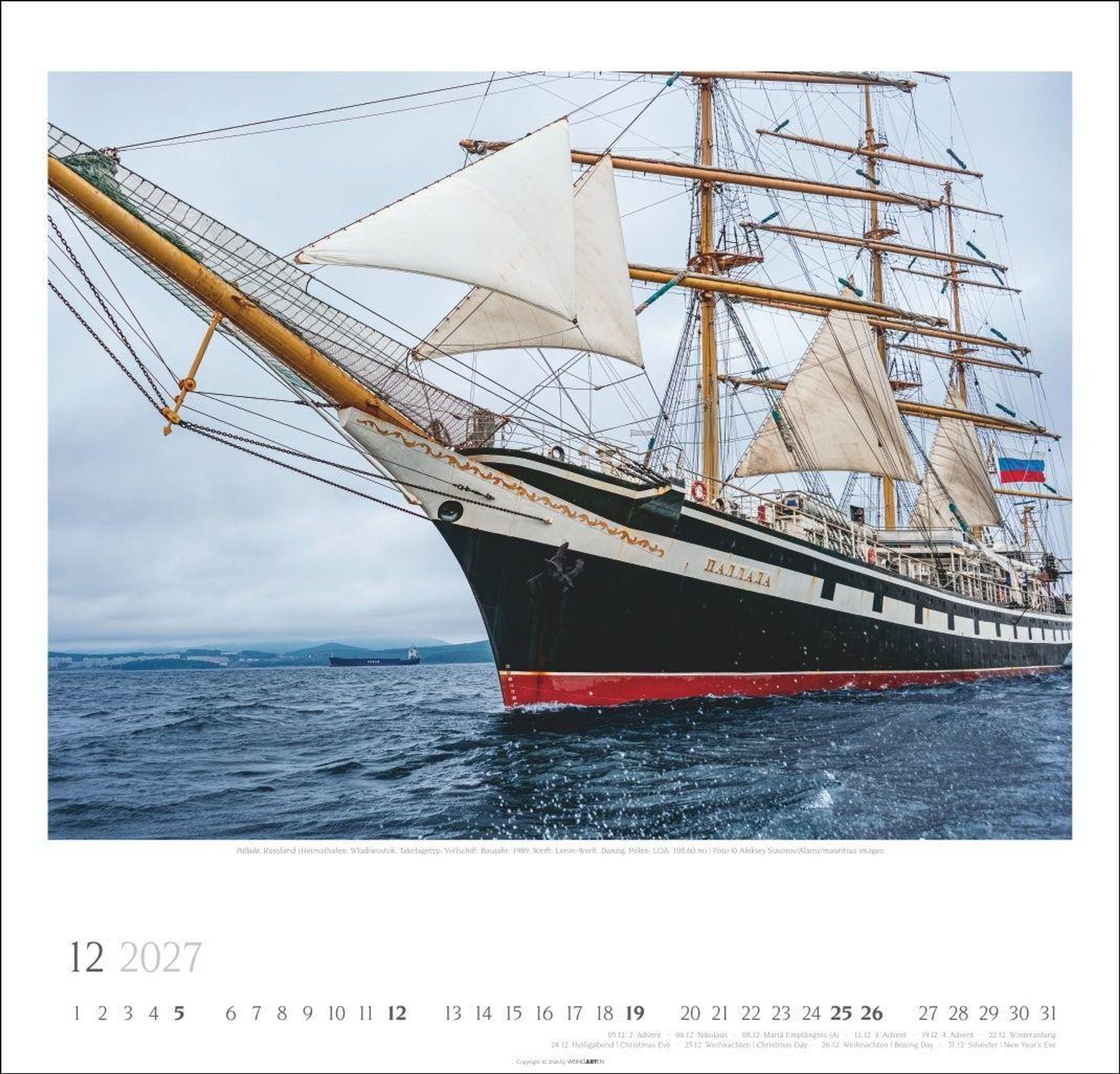 - Großartige Fotos majestätischer Segelschiffe in einem großen Wandkalender. Das Querformat bringt die Großsegler in diesem großen Kalender perfekt zur Geltung.