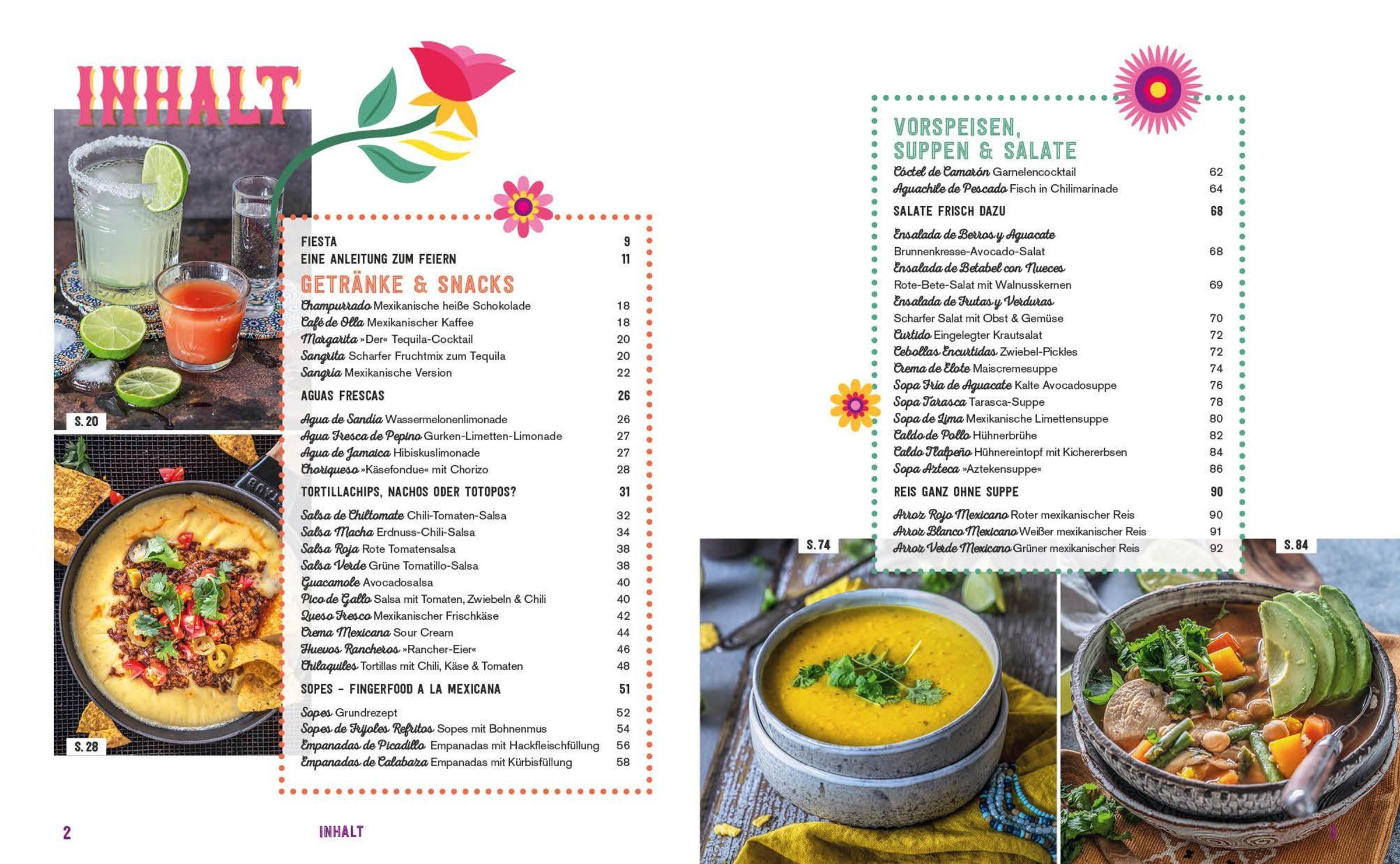 - Rund 100 der besten Rezepte zum Feiern mit Freunden oder zum Selbst-Genießen - mit Streetfood-Lieblingen wie Tacos, Burritos, Fajitas oder Enchiladas, feinen Partysnacks wie Tomatensalsa oder Guacamole und gekühlten Drinks wie Margaritas oder Sangria. Dazu gibt es rundum satt machende Hauptgerichte wie Huhn in Schokoladensauce, Chili con Carne oder mexikanisches Pulled Pork und süße Desserts wie Karamellcreme-Eis, Tres-Leches-Kuchen oder kandierten Kürbis.