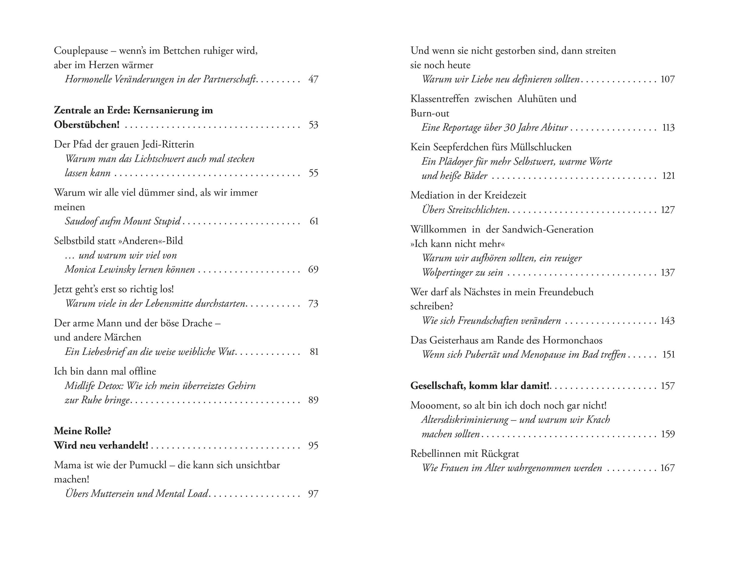 Willkommen in der Lebensmitte - der Phase, in der Sie nicht mehr jedem Trend hinterherlaufen müssen. Tanja Mairhofer erzählt ehrlich, humorvoll und stilbewusst vom Leben als Frau zwischen 40 und 55: graue Ansätze, Falten, Hitzewallungen , FOMO, Konflikte und Hormonturbulenzen - und wie daraus neue Klarheit und Freiheit wachsen. Ob Job, Familie, Partnerschaft oder Selbstbild: Dieses Buch nimmt den Druck raus, schenkt Perspektive und macht Mut, die eigene Mitte zu feiern. Kein Selbstoptimierungsstress, sondern warmherzige Geschichten zum Wiedererkennen, Aufatmen und Lachen - ideal auch als Geschenkidee.