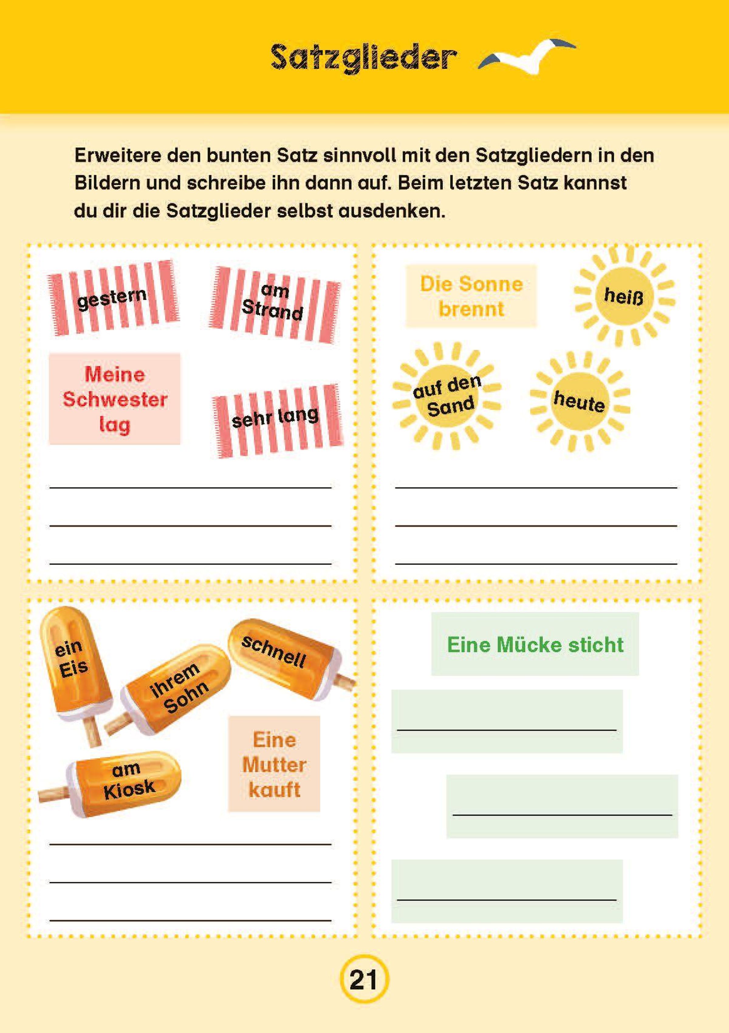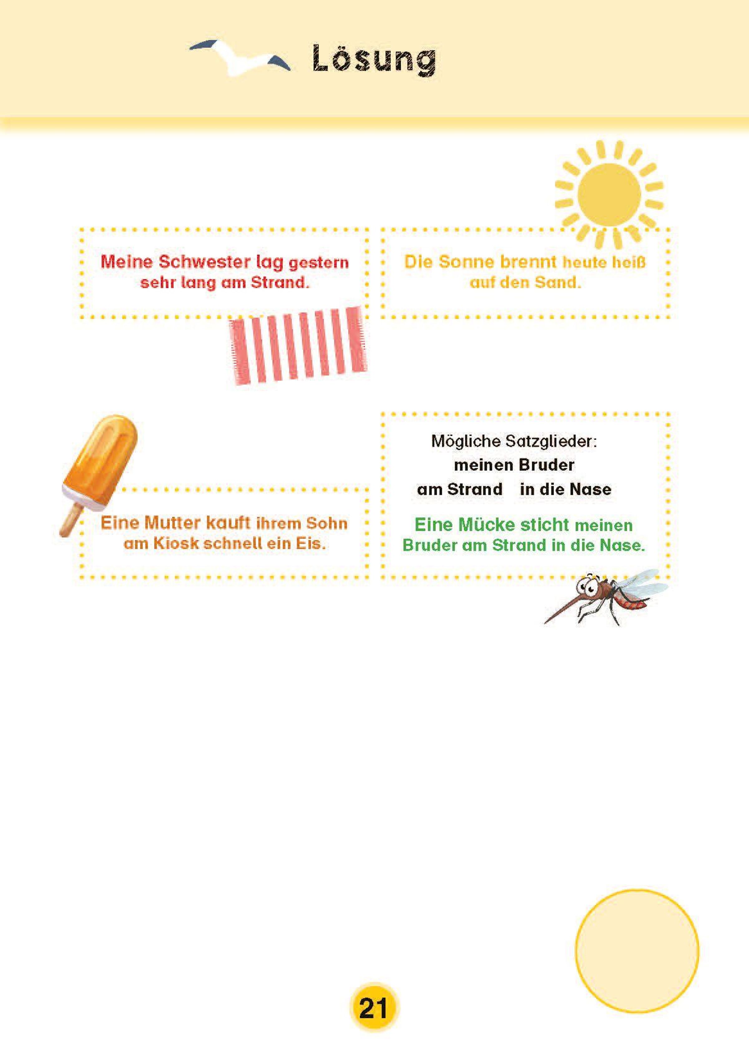 Lernen mit Spaß unter dem Label der Schülerhilfe: Unsere neue Reihe "Mein Ferienblock" motiviert Kinder der 4. Klasse dazu, auch während der Ferien in den Fächern Deutsch und Mathematik ein wenig zu üben. Durch die Kombination aus spielerischen Übungen und kniffligen Lernrätseln kommt der Spaß dabei nie zu kurz. Die Aufgaben sind perfekt auf den Lernstoff der 4. Klassenstufe abgestimmt und so gestaltet, dass sie nicht nur lehrreich, sondern auch unterhaltsam sind. Durch den Spaßcharakter der Aufgaben wird das Lernen zur kurzweiligen Beschäftigung, die die Kinder gern in Angriff nehmen. Ob auf langen Autofahrten oder an verregneten Tagen - unser Ferienblock ist die ideale Lösung, um Langeweile zu vertreiben und gleichzeitig das Grundwissen der 4. Jahrgangsstufe zu festigen. Jede Seite enthält eine Übung, die Lösungen befinden sich auf der Rückseite. Auf allen Seiten sind die Themen Ferien und Urlaub präsent, was sich auch in der reichhaltigen und fröhlichen Bebilderung widerspiegelt. Die Belohnungssticker sorgen für zusätzliche Motivation: Hat das Kind eine Aufgabe gelöst, kann es einen der bunten Urlaubssticker in den Rahmen auf der Lösungsseite kleben.
