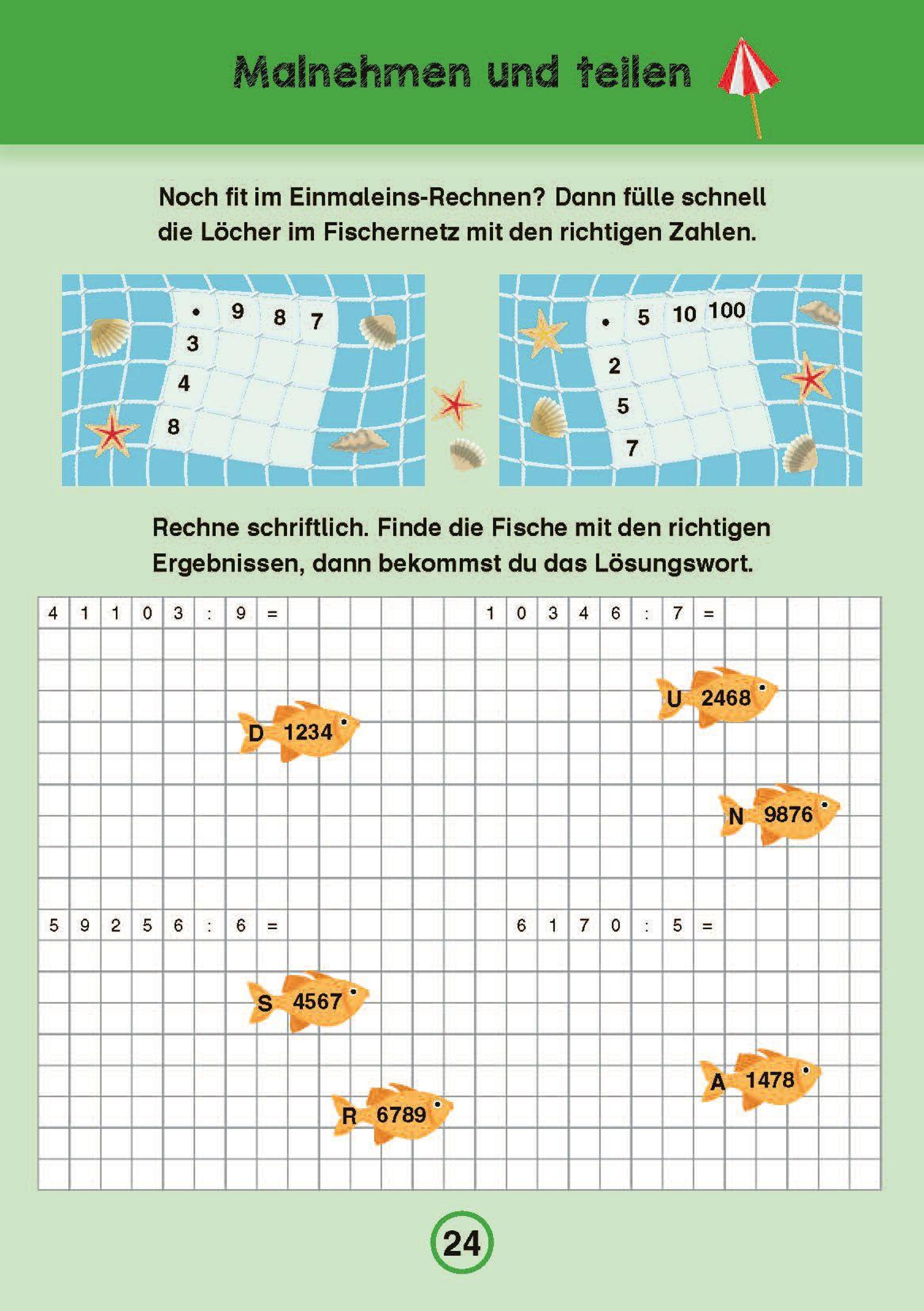Der Block der 4. Klasse enthält spielerische Übungen und Rätsel zu den wichtigsten Themen der 4. Jahrgangsstufe in den Fächern Deutsch & Mathematik: Rechnen bis zur Million, Rechenrätzel zu Mal- und Geteiltaufgaben, Textaufgaben zu Ferienthemen, Kreuzworträtsel mit Urlaubsbegriffen, die vier Fälle, Buchstabenpuzzle, Zahlenreihen fortsetzen, Satzglieder bestimmen, Kochrezept, Ferientagebuch und vieles mehr.