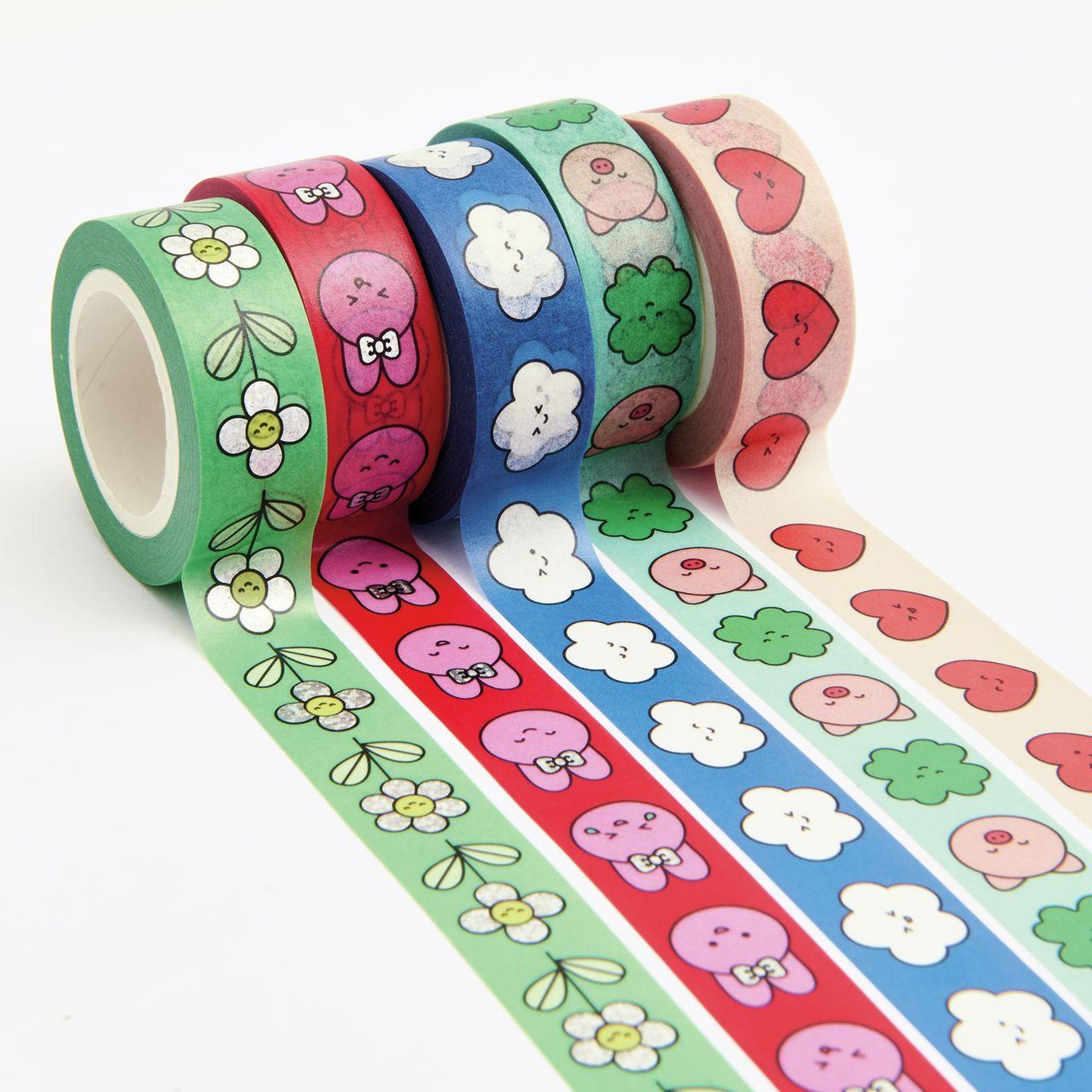 Das Tape-Set "Chingu" enthält fünf dekorative Klebebänder mit verschiedenen Designs und ist ideal zum Verzieren von Karten, Geschenken oder kreativen Bastelprojekten. Die Tapes lassen sich leicht abrollen und haften zuverlässig auf Papier und anderen glatten Oberflächen. Durch die plastikfreie Verpackung wird auf Nachhaltigkeit geachtet.