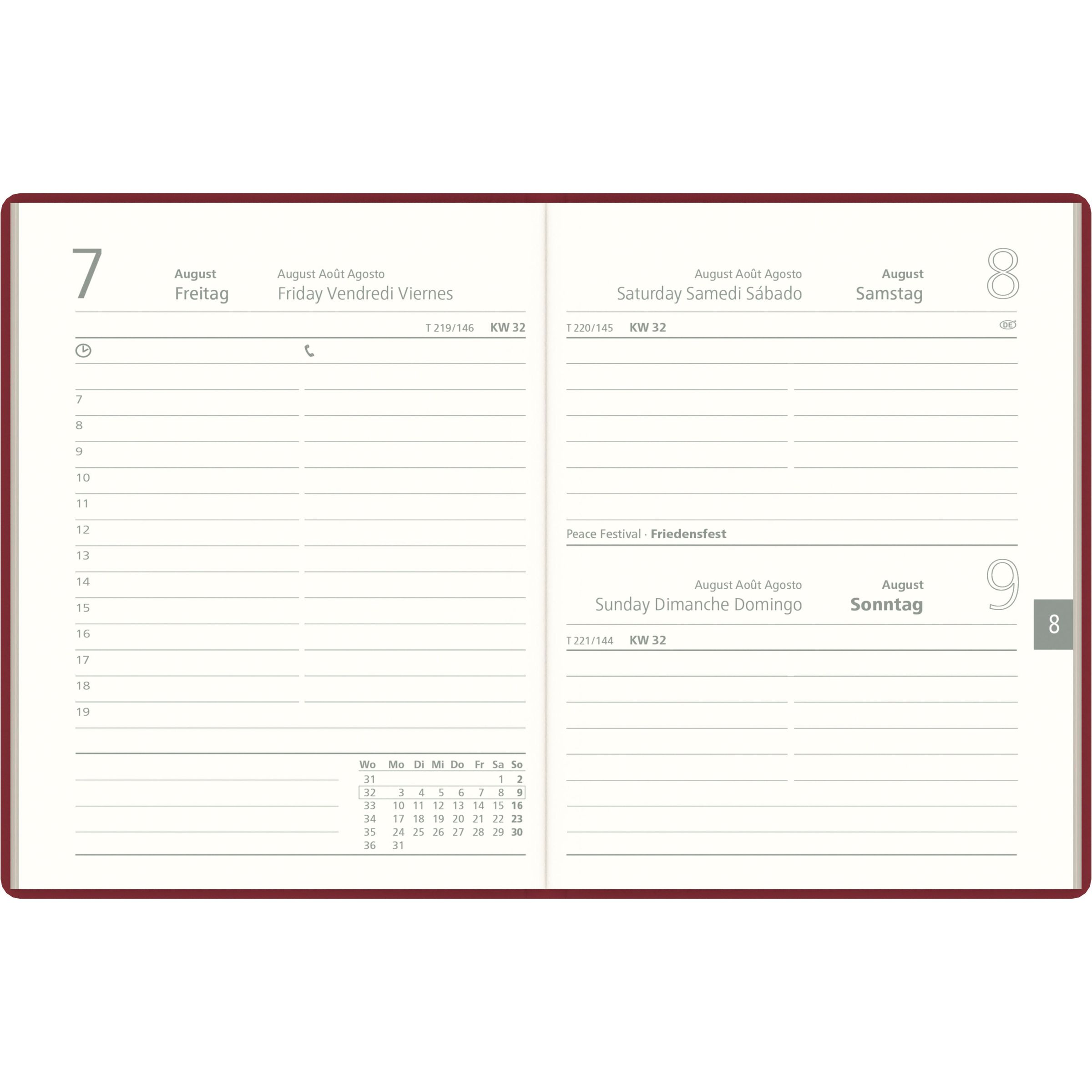Format & Ausstattung: 10 × 14 cm, 400 Seiten, robuster bordeauxfarbener Kunststoffeinband mit silberner Jahreszahl