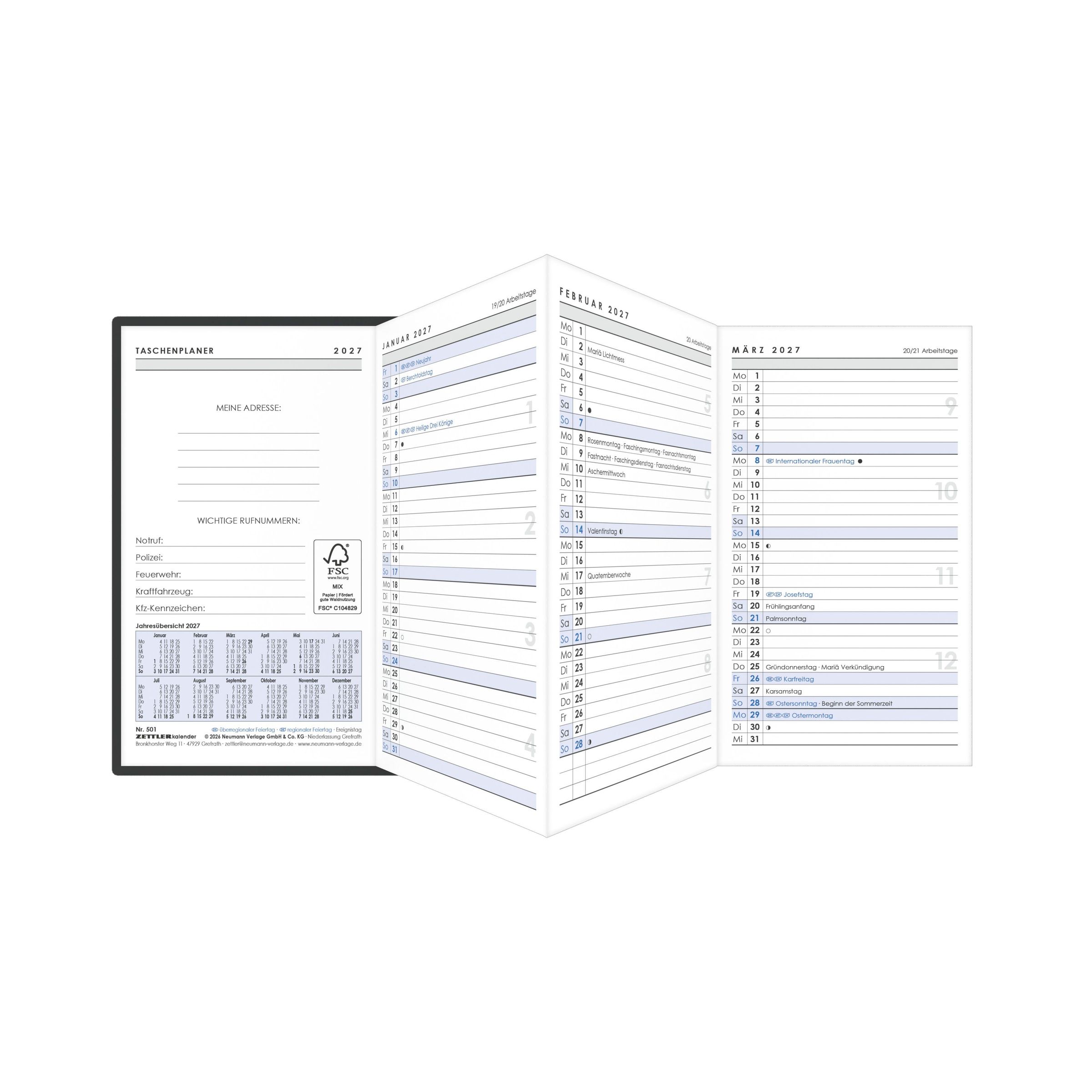 Taschenplaner Leporello schwarz 2027, Kartoniert / Broschiert