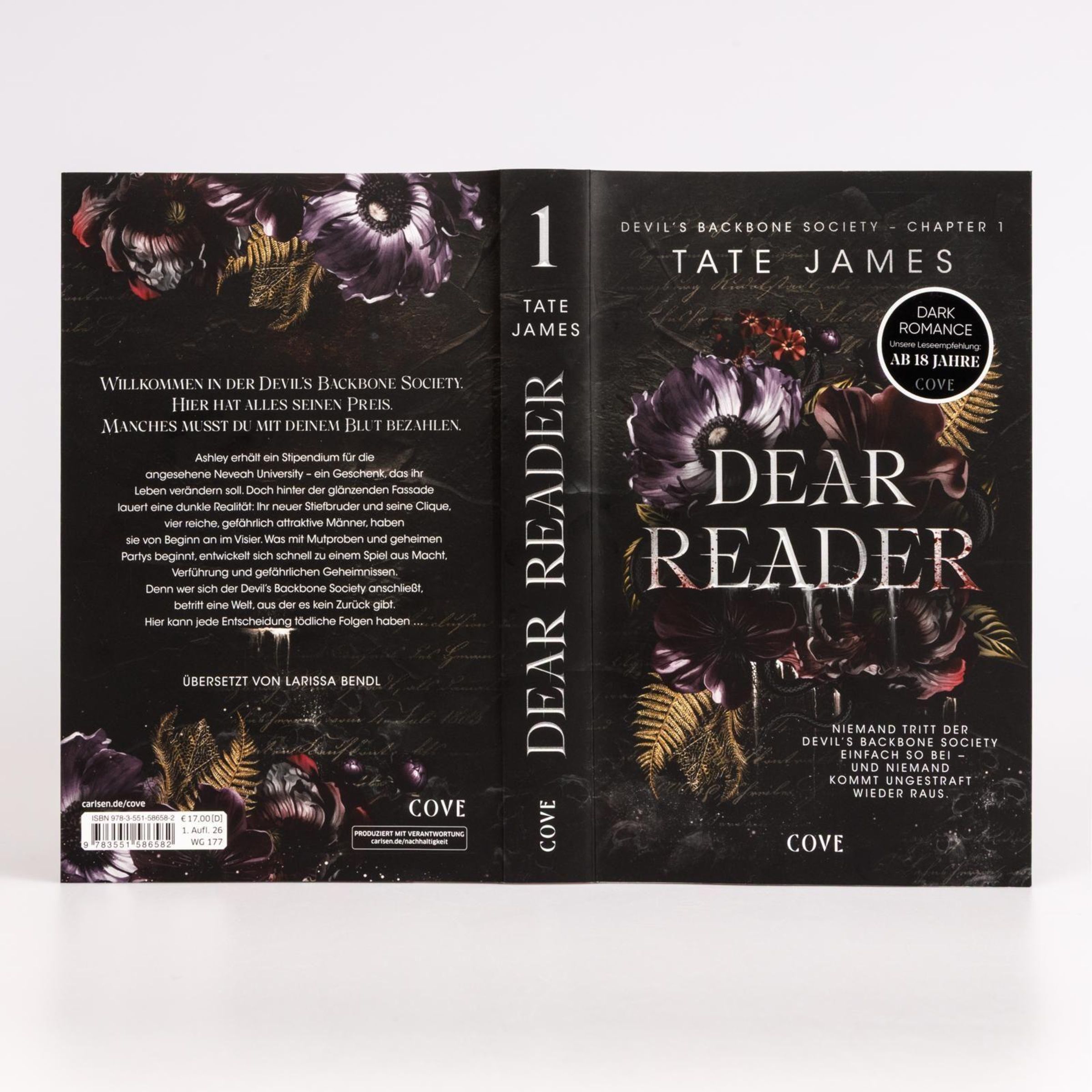 Dear Reader ist der erste Band einerspicy Dark Romance Trilogie mit einer Secret College Society und den beliebten Tropes Enemies to Lovers und Why Choose von Bestseller-Autorin Tate James. Unsere Leseempfehlung: ab 18 Jahre, bitte beachtet die Contentwarnung!