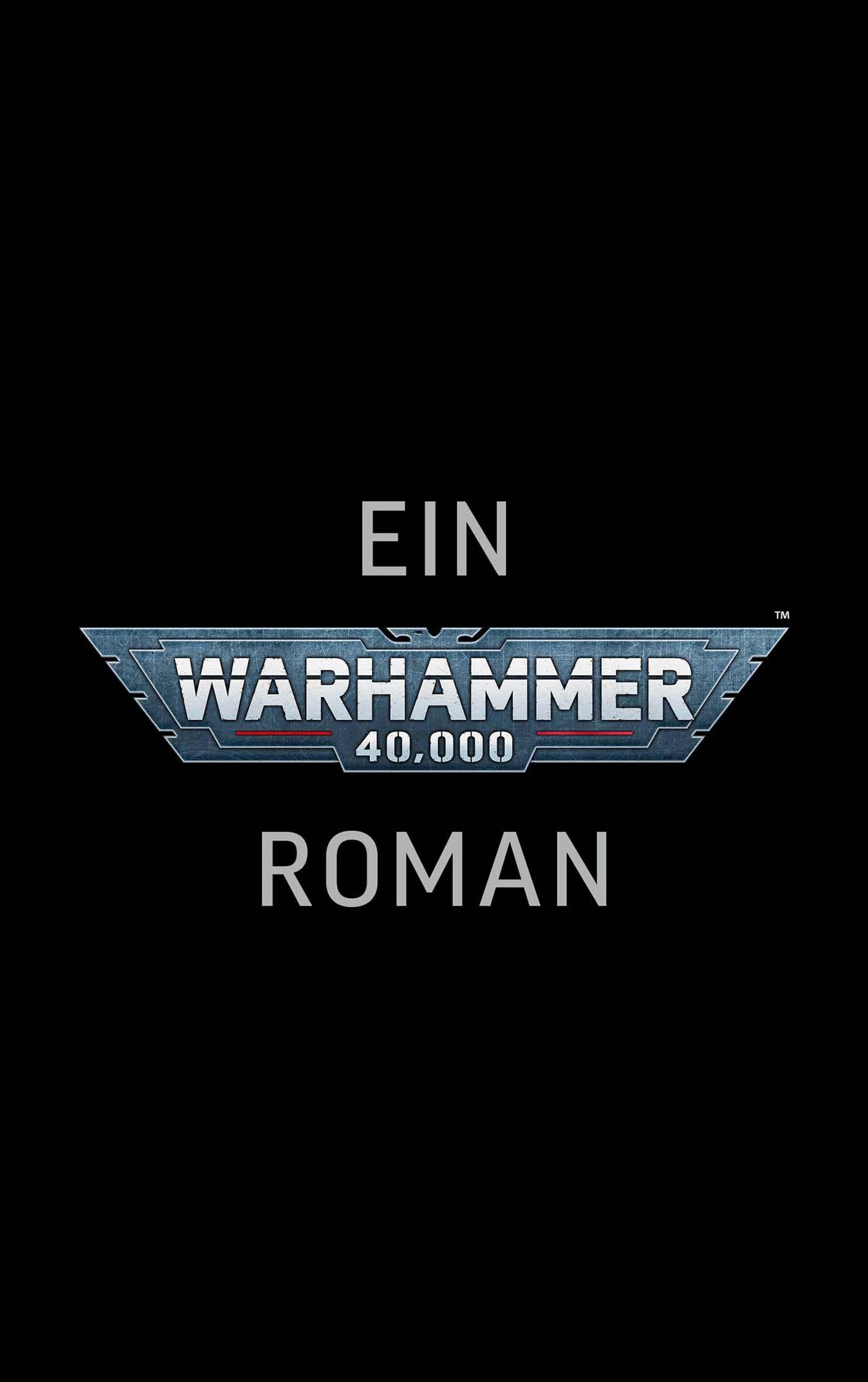 Text: "EIN ROMAN" und "WARHAMMER 40,000". Logo in metallischem Stil auf schwarzem Hintergrund., Buch