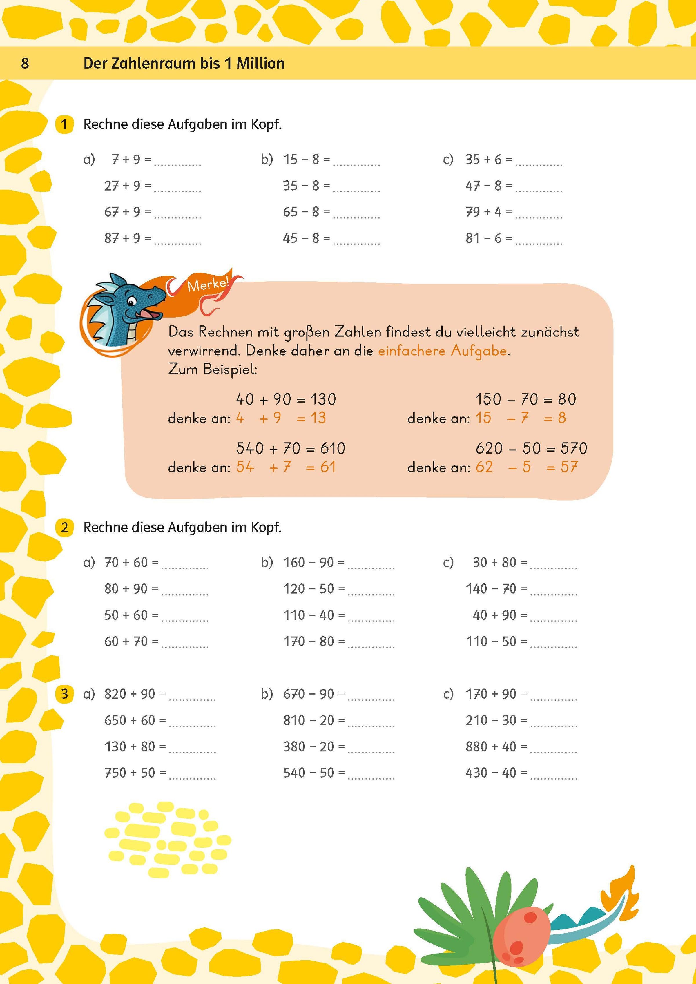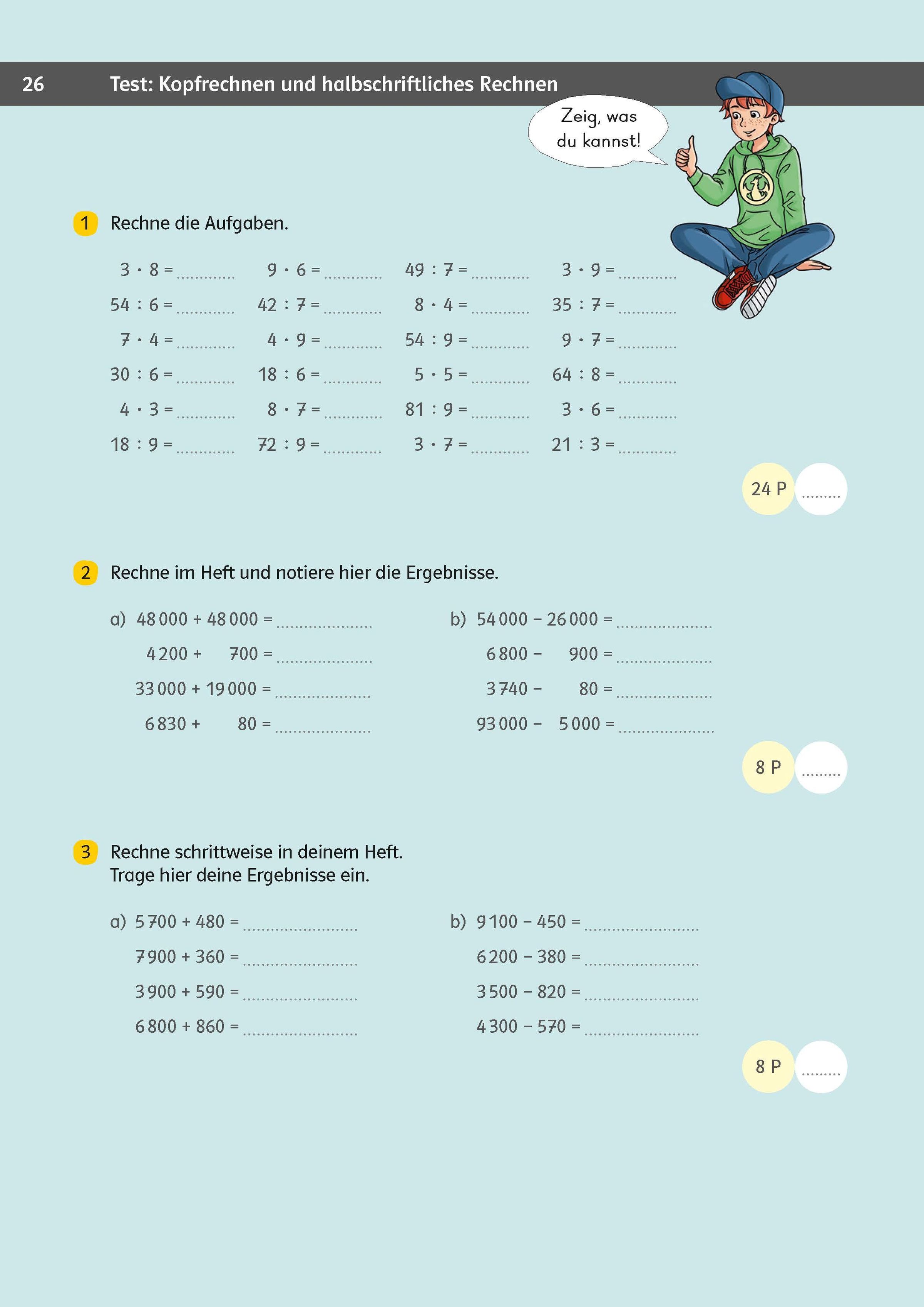 - Mehr als 300 Übungen, Merkkästen und Zusammenfassungen zu allen Bereichen des Faches Mathematik: Zahlen und Grundrechenarten, Größen und Messen, Raum und Form, Muster und Strukturen, Daten und Sachaufgaben