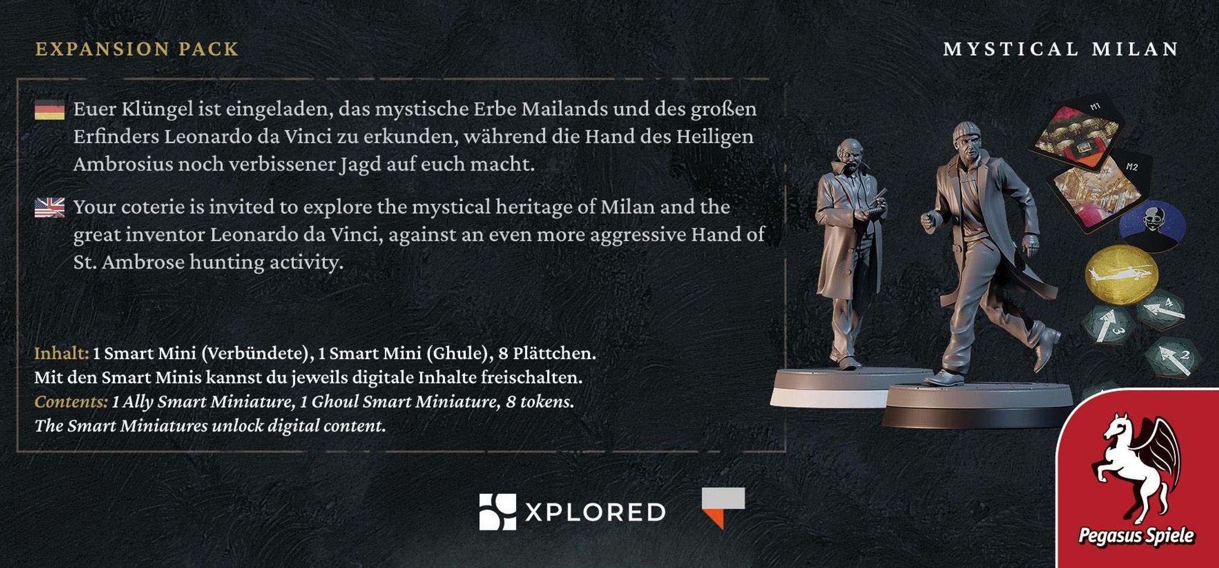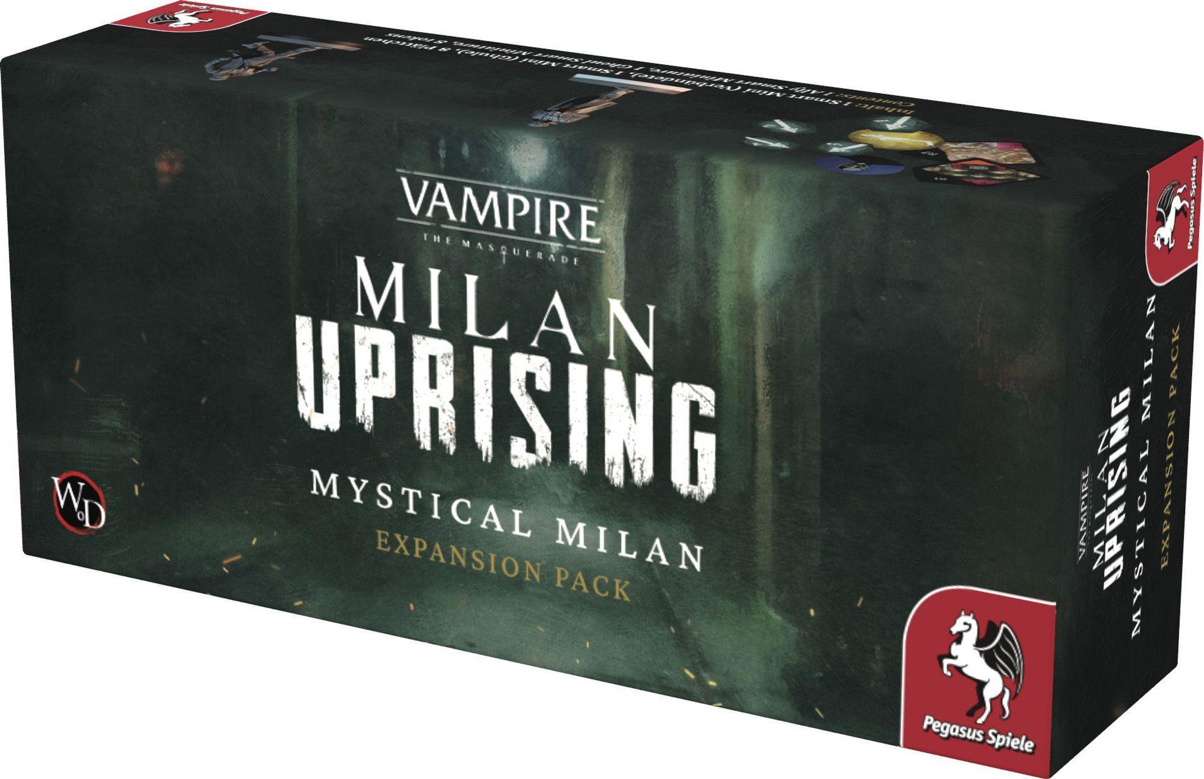 Euer Klüngel ist eingeladen, das mystische Erbe Mailands und des großen Erfinders Leonardo da Vinci zu erkunden, während die Hand des Heiligen Ambrosius noch verbissener Jagd auf euch macht. Mit dieser Story-Erweiterung werden 10+ Stunden an neuen, digitalen Inhalten im Grundspiel Vampire: The Masquerade - Milan Uprising freigeschaltet, die die Spielenden noch tiefer in die Geschichte eintauchen lassen. Dies ist eine Erweiterung, kein Grundspiel. Zum Spielen werden zusätzlich das Teburu Board sowie das Grundspiel Vampire: The Masquerade - Milan Uprising benötigt. Außerdem ist eine kostenlose digitale App erforderlich (deutsche Version verfügbar).