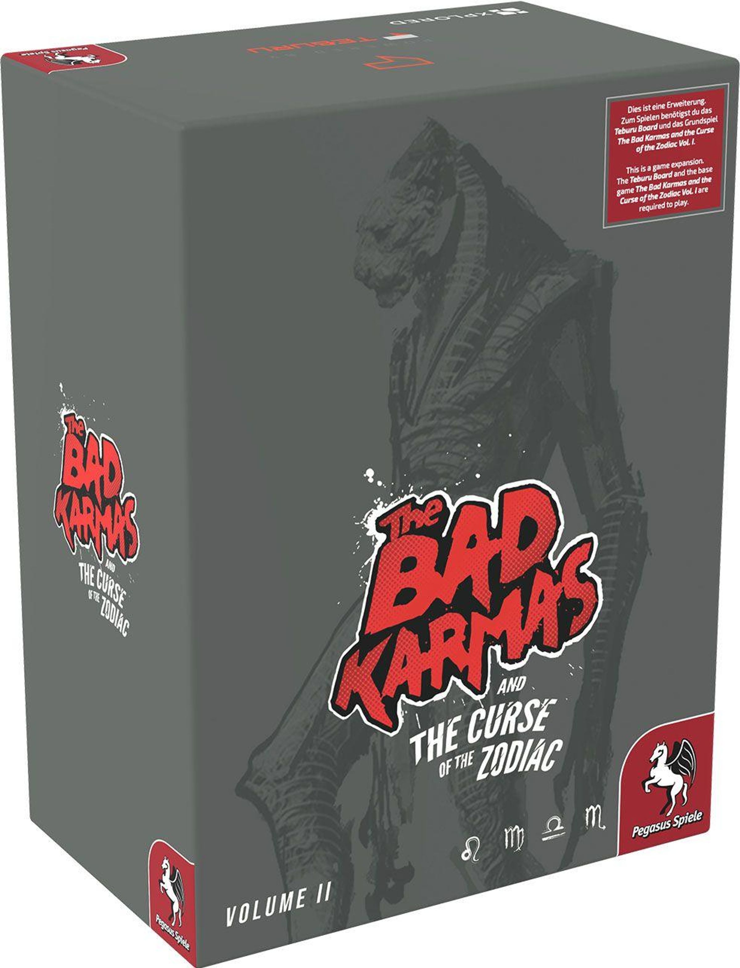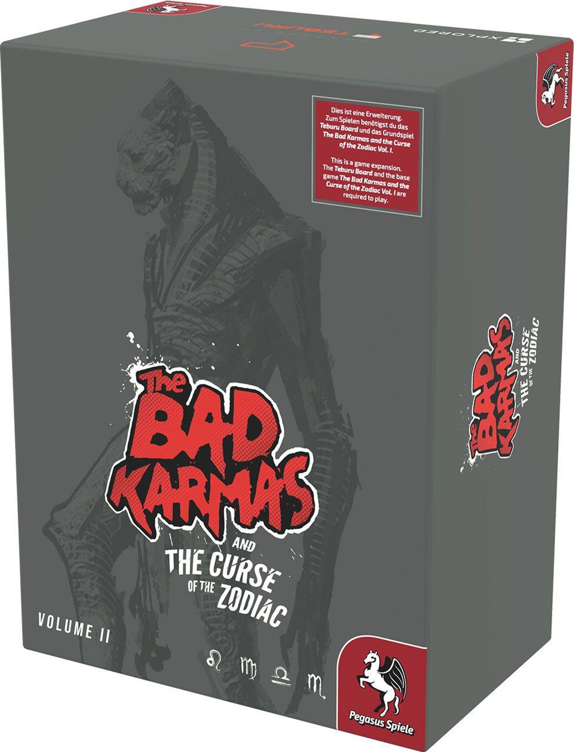 Der Kampf der Bad Karmas um das Überleben der Menschheit nimmt kein Ende. In dieser Erweiterung von The Bad Karmas and the Curse of the Zodiac treten die Spielenden gegen Leo, Virgo, Libra und Scorpio an. Volume 2 fügt der The Bad Karmas-Saga vier neue Bosse hinzu. Um diese Erweiterung zu Spielen ist das Grundspiel (Volume 1) erforderlich. Dies ist eine Erweiterung. Zum Spielen werden das Teburu Board und das Grundspiel The Bad Karmas and the Curse of the Zodiac Vol. 1 benötigt. Zum Spielen von TBK ist eine kostenlose digitale App erforderlich (deutsche Version verfügbar).