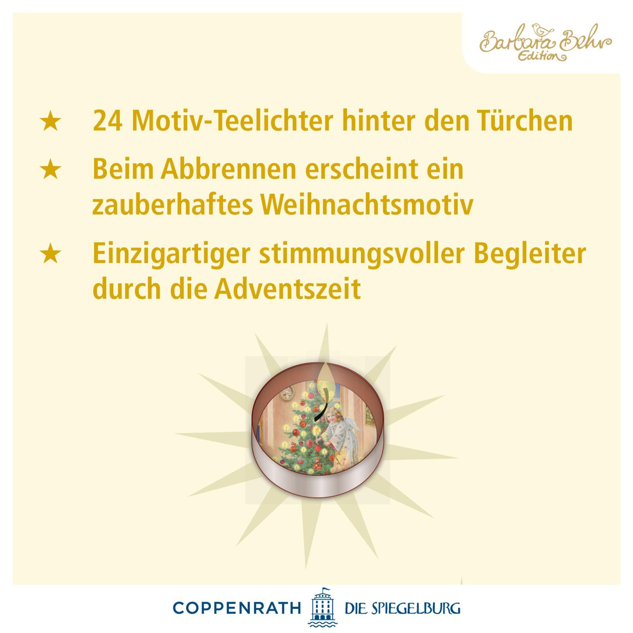 Der zauberhafte Adventskalender versteckt hinter seinen Türchen 24 Teelichter, die beim Abbrennen ein nostalgisches Weihnachtsmotiv erscheinen lassen. Mache es dir zu Hause gemütlich und entzünde ein Licht. Spüre die Wärme und Magie und beobachte, wie nach etwa einer Stunde eine wunderschöne Bildüberraschung zum Vorschein kommt! Ein einzigartiger stimmungsvoller Begleiter durch die Adventszeit. Nostalgischer Teelicht-Adventskalender - 24 Lichtmomente mit Bildüberraschung
