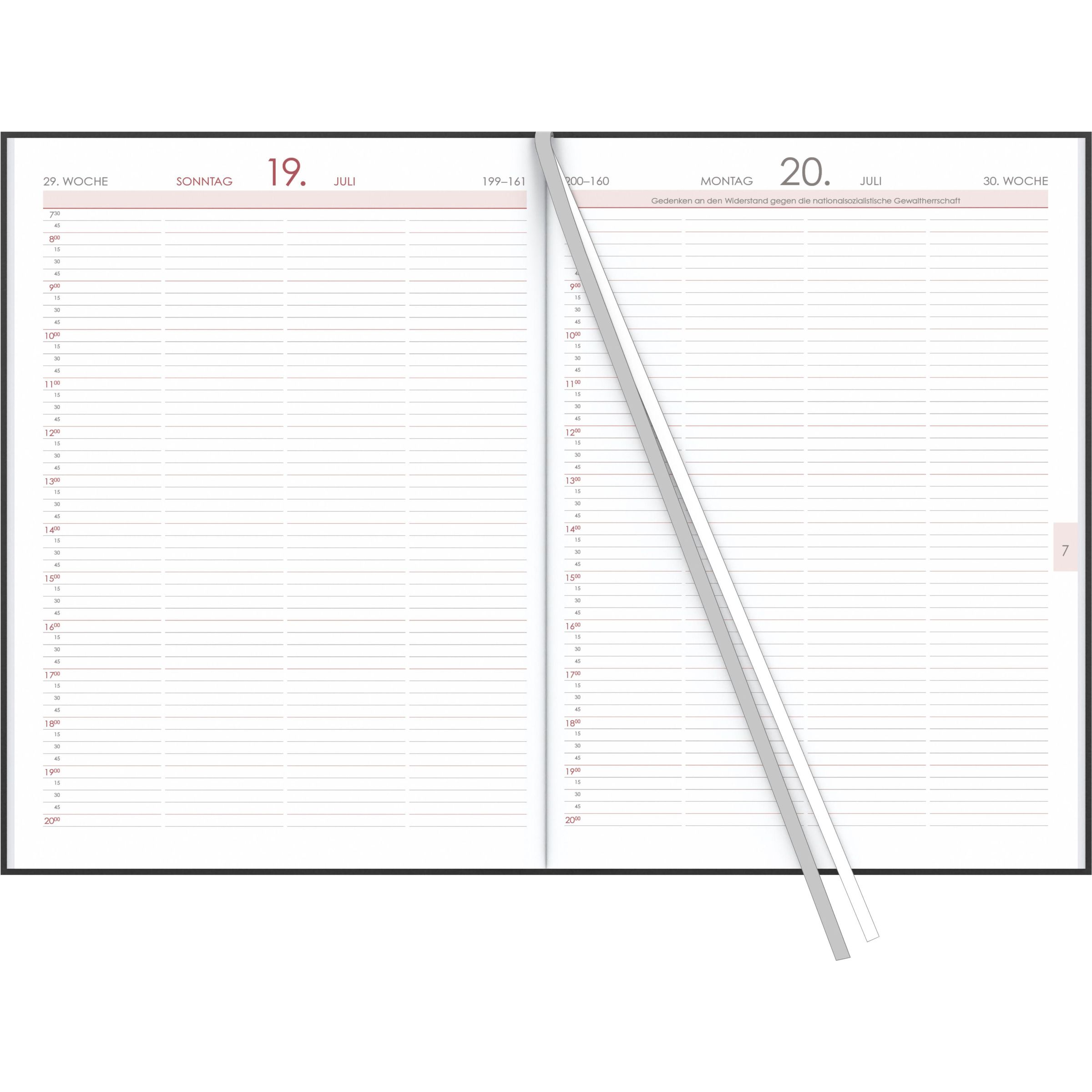 Terminbuch anthrazit 2026 - Bürokalender A4 (21x29,7 cm) - 1 Tag 1 Seite - Einband wattiert - Viertelstundeneinteilung 7:30 - 20 Uhr - 886-0021