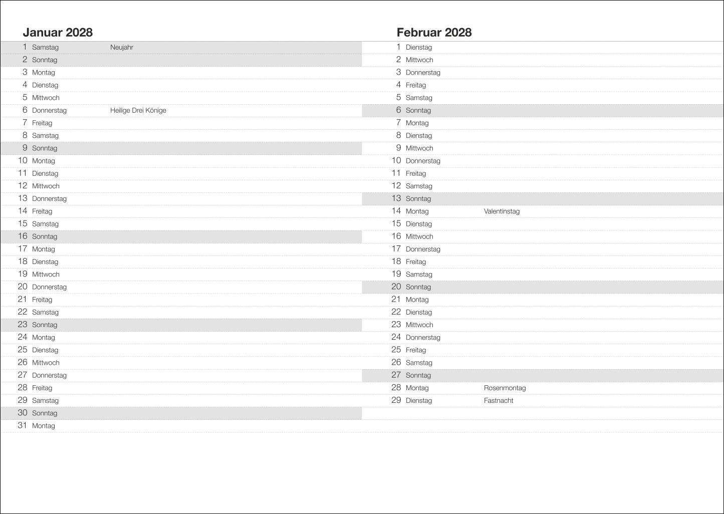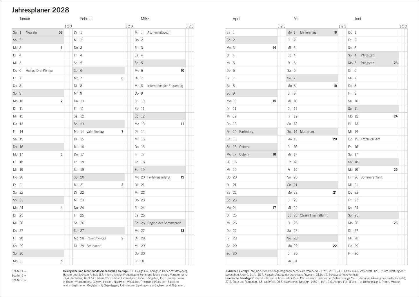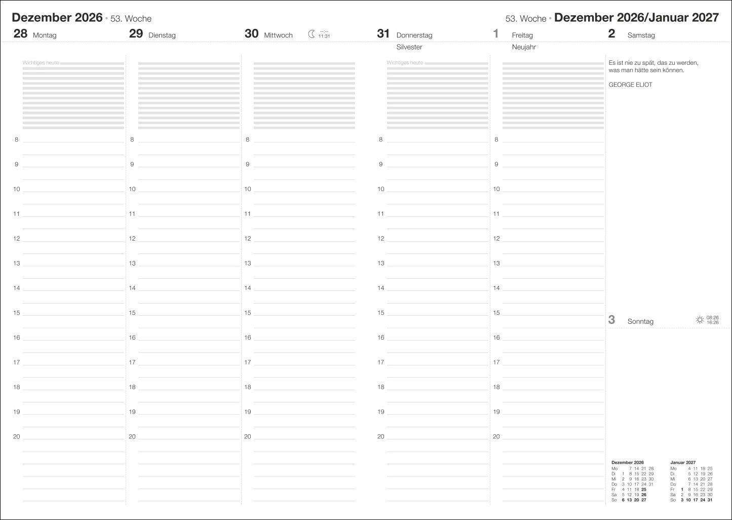 A5-Format mit reichlich Platz für alles, was wichtig ist: Die ganze Woche auf einen Blick im handlichen Terminkalender