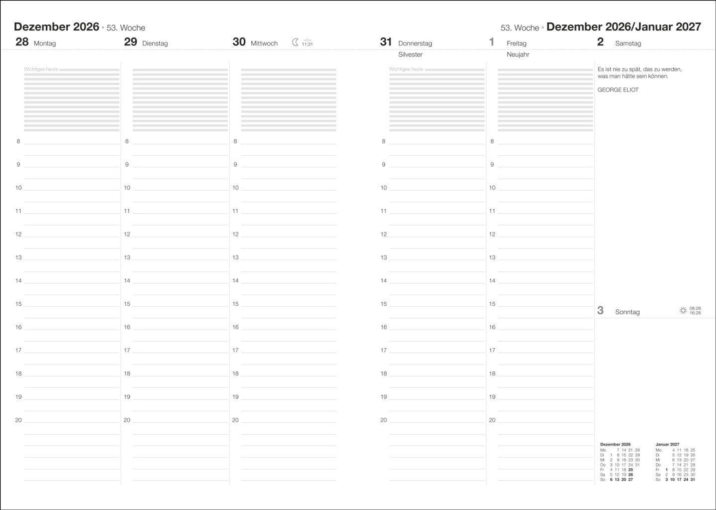 Lenkt den Blick auf das Wesentliche: Cheftimer mit inspirierenden Zitaten und viel Raum für Eintragungen