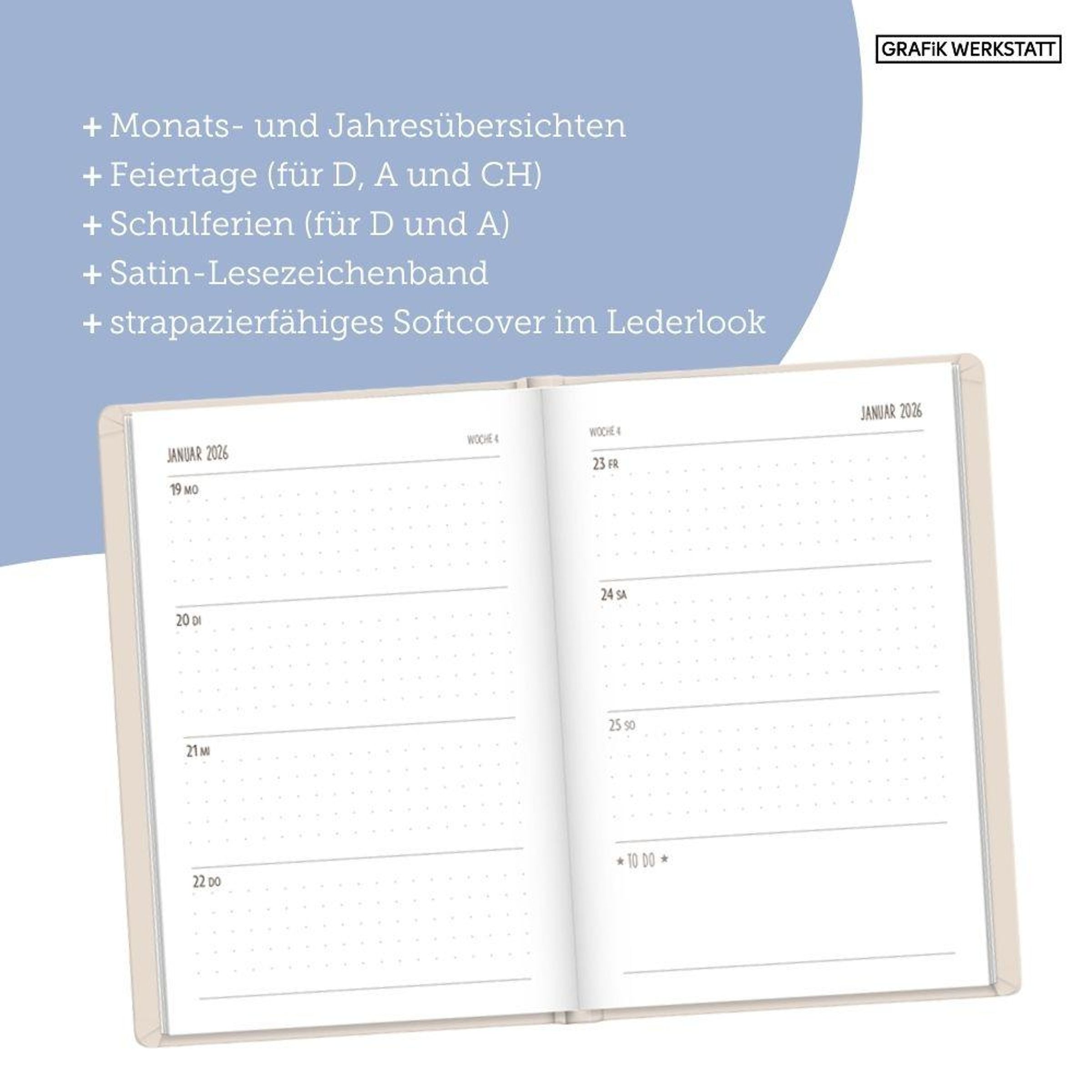Ein hochwertiger Terminplaner für 2026 mit edlem Softcover