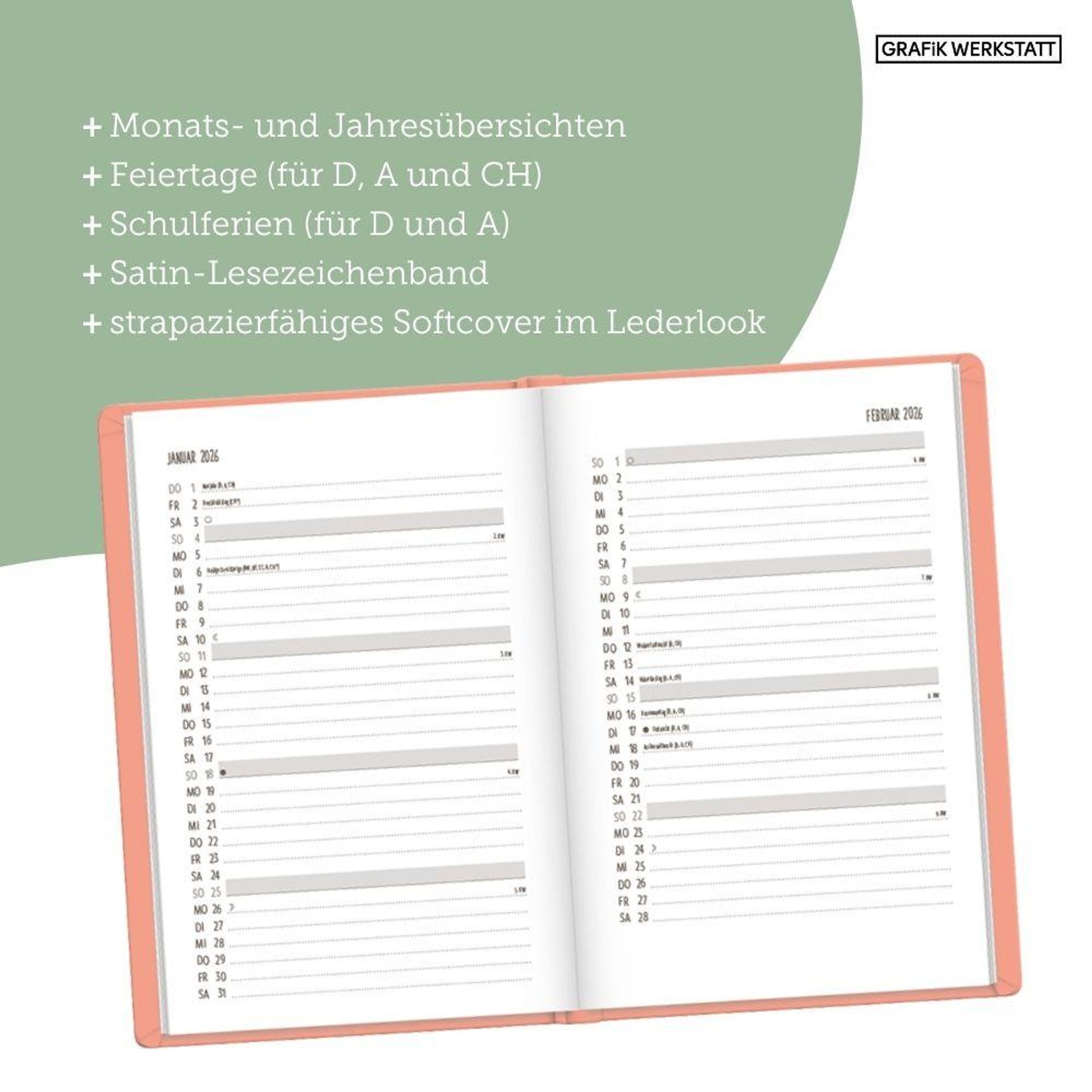 Ein hochwertiger Terminplaner für 2026 mit edlem Softcover