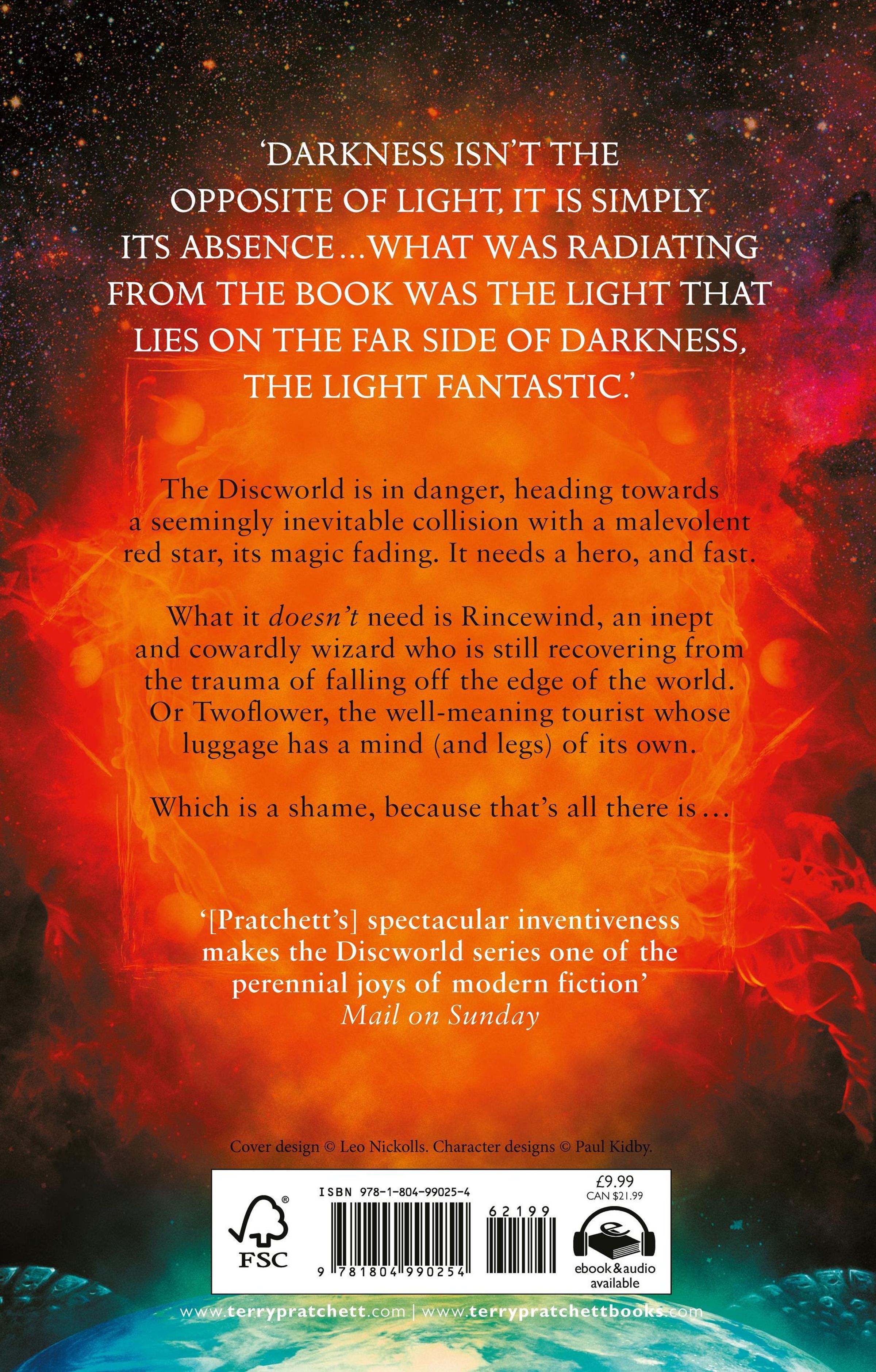 'Darkness isn't the opposite of light, it is simply its absence . . . what was radiating from the book was the light that lies on the far side of darkness, the light fantastic.'The Discworld is in danger, heading towards a seemingly inevitable collision with a malevolent red star, its magic fading. It needs a hero, and fast. What it doesn't need is Rincewind, an inept and cowardly wizard who is still recovering from the trauma of falling off the edge of the world. Or Twoflower, the well-meaning tourist whose luggage has a mind (and legs) of its own. Which is a shame, because that's all there is . . . 'His spectacular inventiveness makes the Discworld series one of the perennial joys of modern fiction' Mail on Sunday 'Incredibly funny, compulsively readable' The TimesThe Light Fantastic is the second book in the Wizards series, but you can read the Discworld novels in any order.