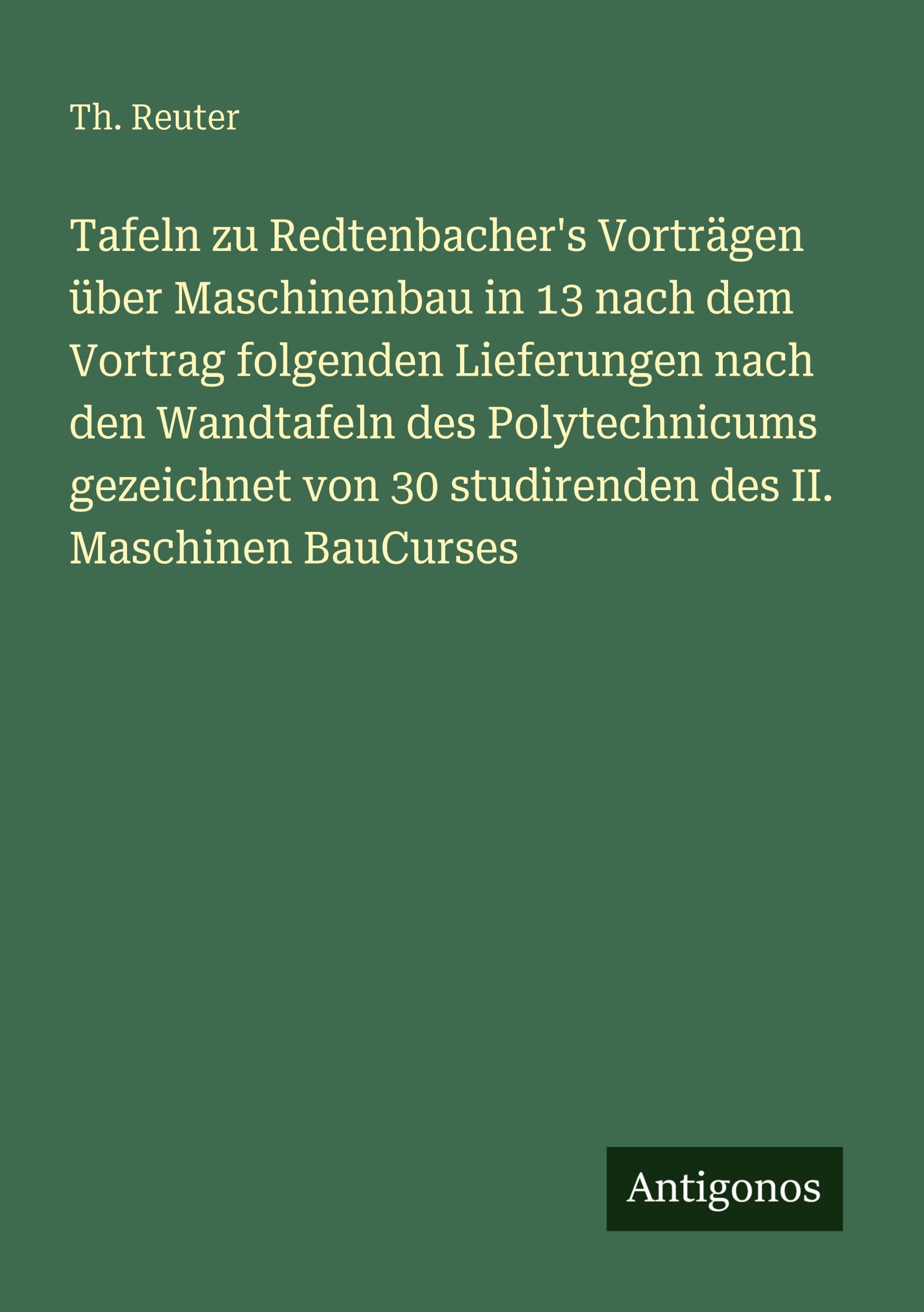 Th. Reuter: Tafeln zu Redtenbacher's Vorträgen über Maschinenbau in 13 nach dem Vortrag folgenden Lieferungen..., Kartoniert / Broschiert
