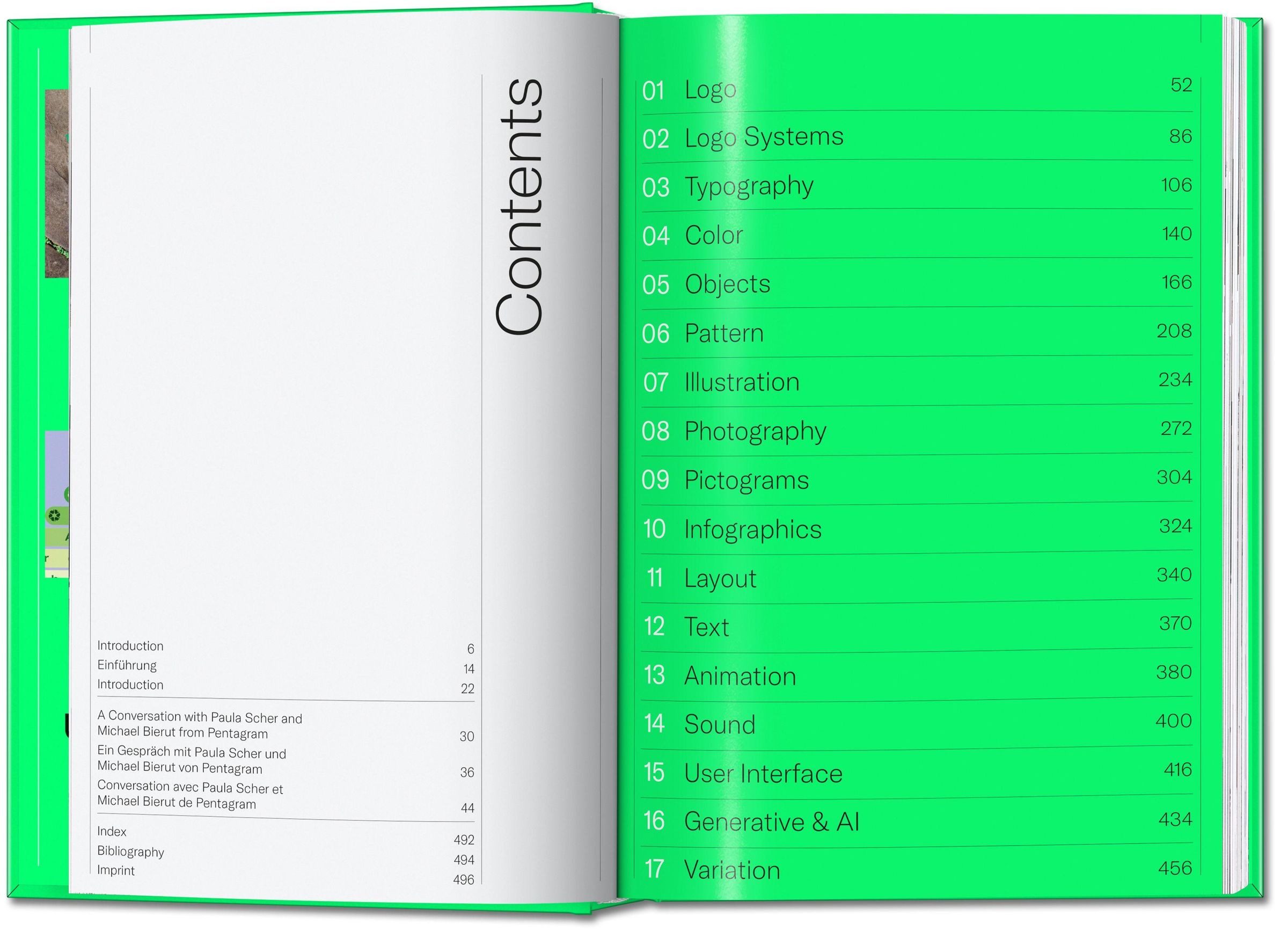 Jens Müller und Katharina Sussek haben mehr als 100 Fallstudien in 17 Kapiteln zusammengefasst, die jeweils ein Kernelement der Markenidentität beleuchten, und ausführliche Interviews mit Paula Scher und Michael Bierut von Pentagram geführt, den kreativen Köpfen hinter einigen der weltweit bekanntesten Marken.