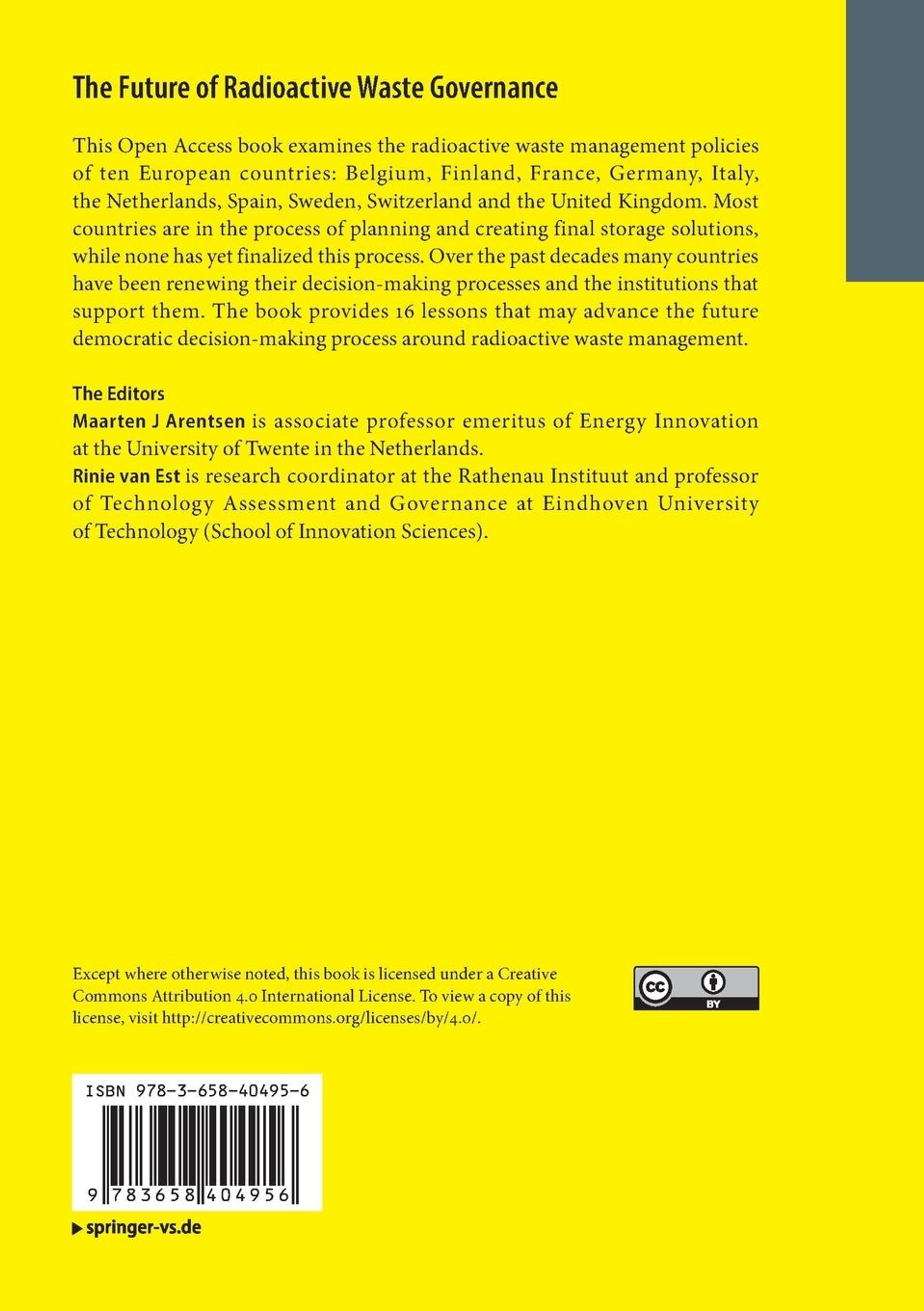 This Open Access book examines the radioactive waste management policies of ten European countries: Belgium, Finland, France, Germany, Italy, the Netherlands, Spain, Sweden, Switzerland and the United Kingdom. Most countries are in the process of planning and creating final storage solutions, while none has yet finalized this process. Over the past decades many countries have been renewing their decision-making processes and the institutions that support them. The book provides 16 lessons that may advance the future democratic decision-making process around radioactive waste management.