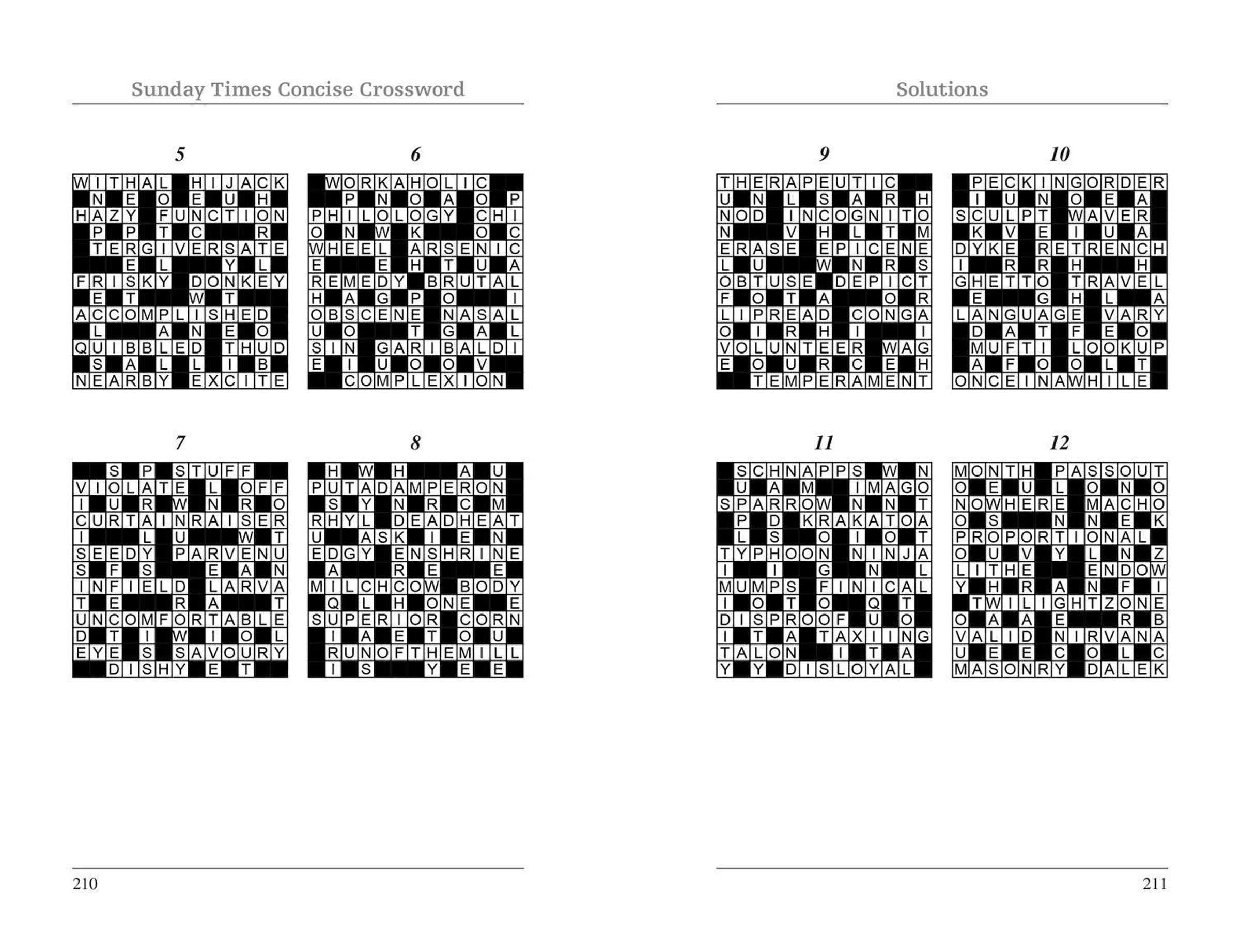 100 crosswords, set out in a clear, easy-to-use double-page spread. The clues are mostly definition-based. There will be clues for which more than one answer is possible, so it's best to look for a clearly unique answer or unique possible combination of crossing answers as the first to write in.
