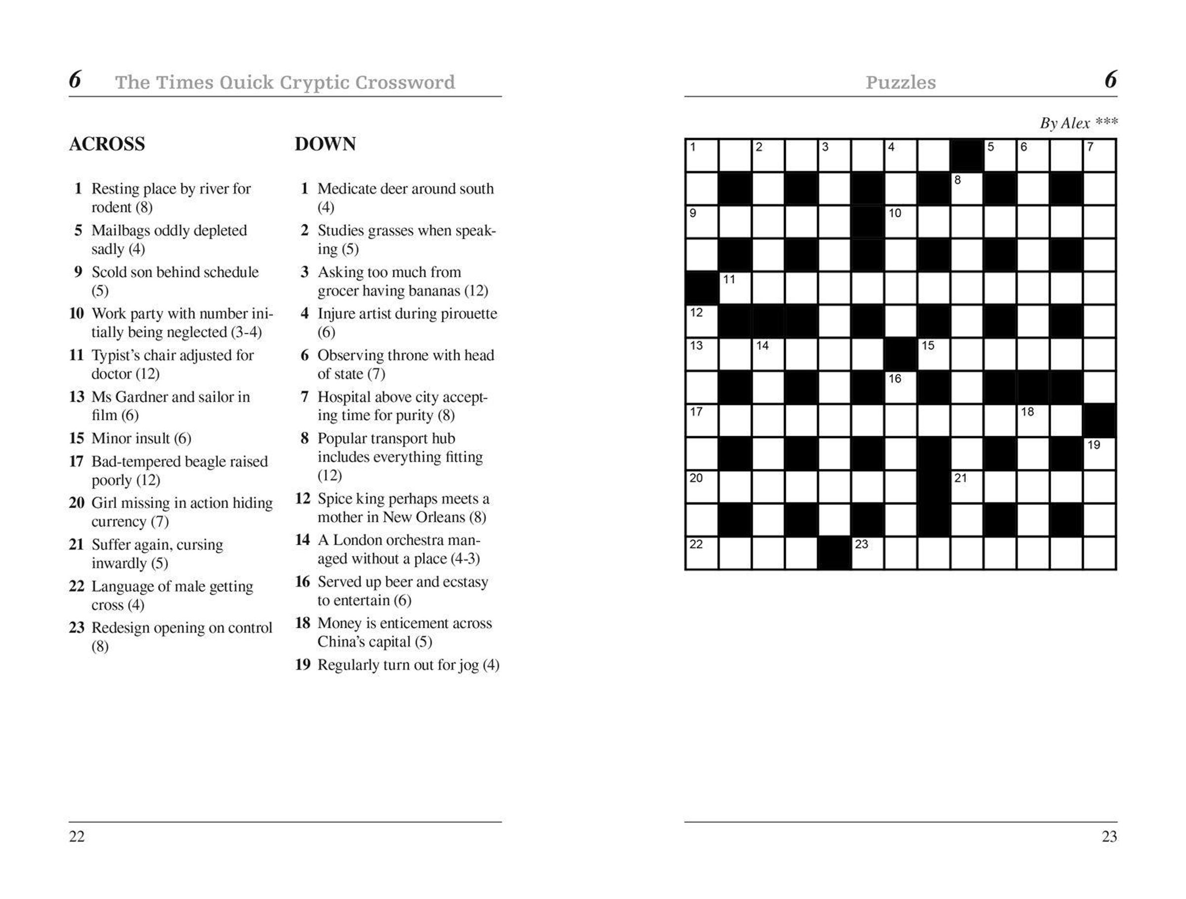 100 puzzles from The Times adapting the cryptic puzzle for those with a hectic lifestyle and schedule. Ideal for those starting out with cryptic crosswords, and those who'd like to tackle the main puzzle but feel daunted, or who can perhaps only solve a handful of clues.