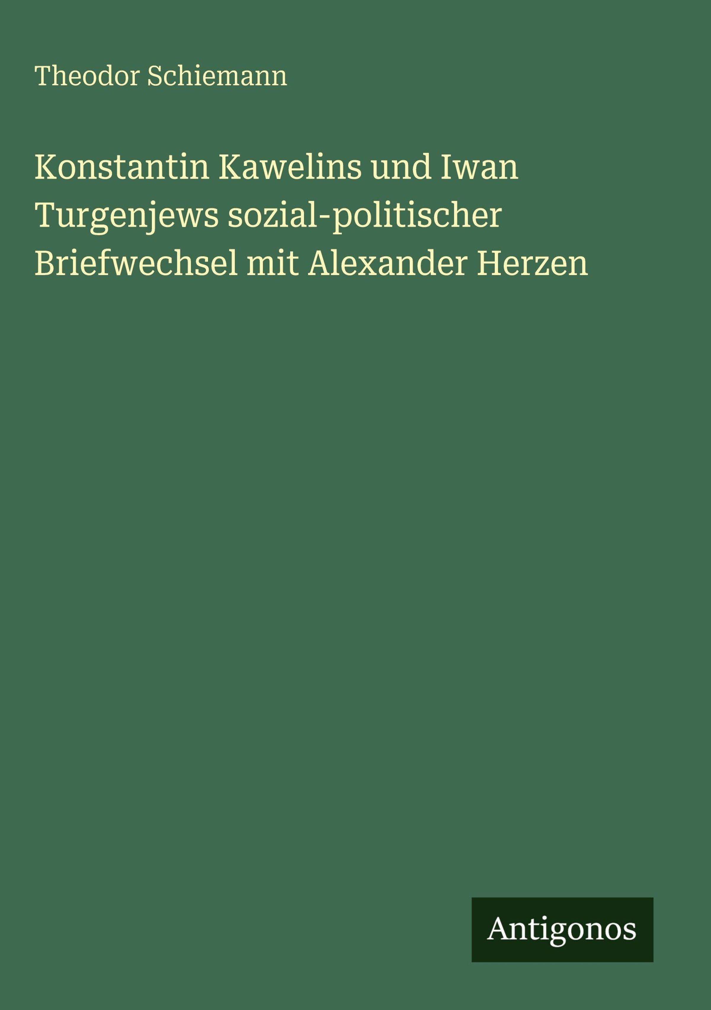 Theodor Schiemann: Konstantin Kawelins und Iwan Turgenjews sozial-politischer Briefwechsel mit Alexander Herzen, Gebunden