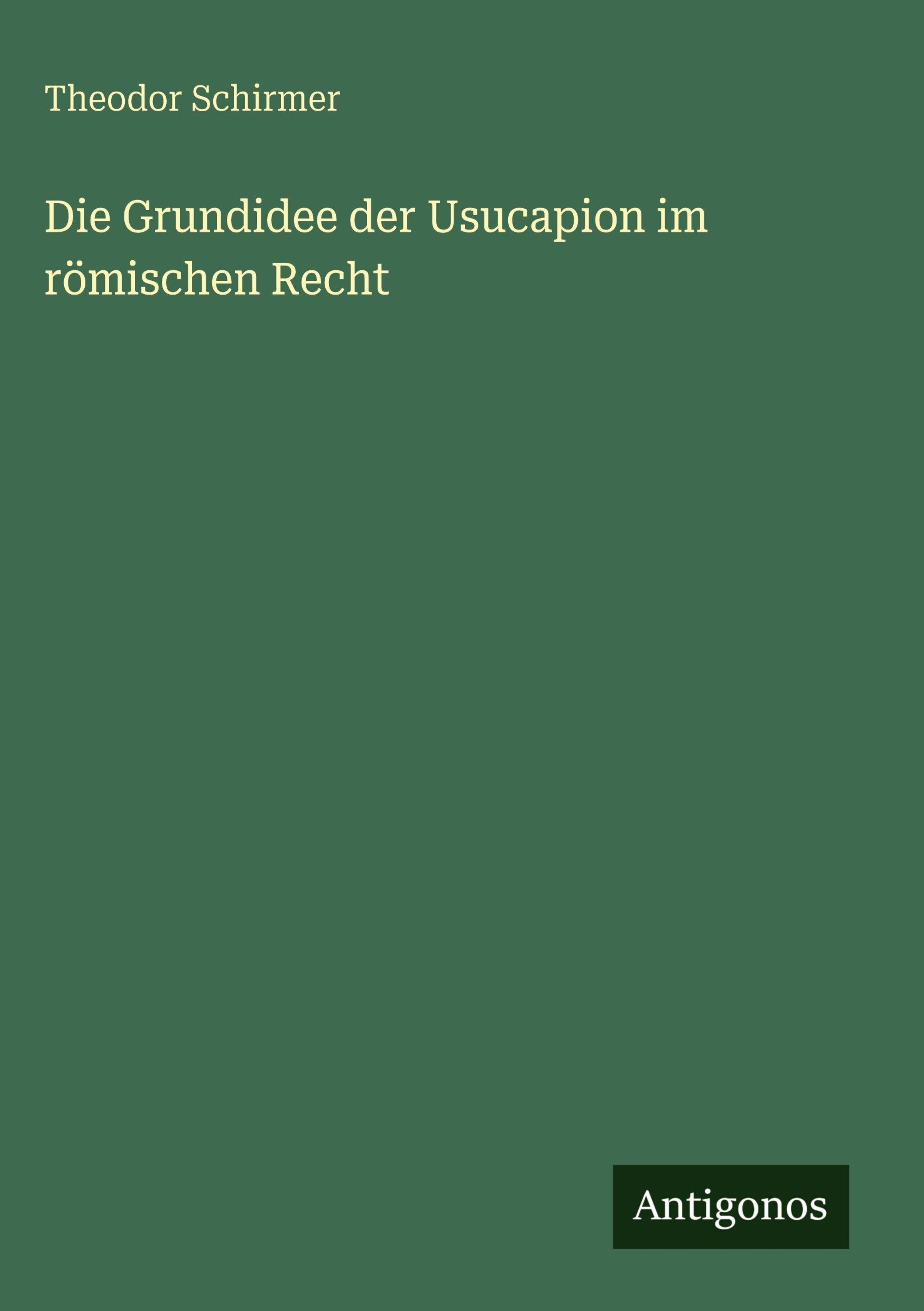Theodor Schirmer: Die Grundidee der Usucapion im römischen Recht, Gebunden