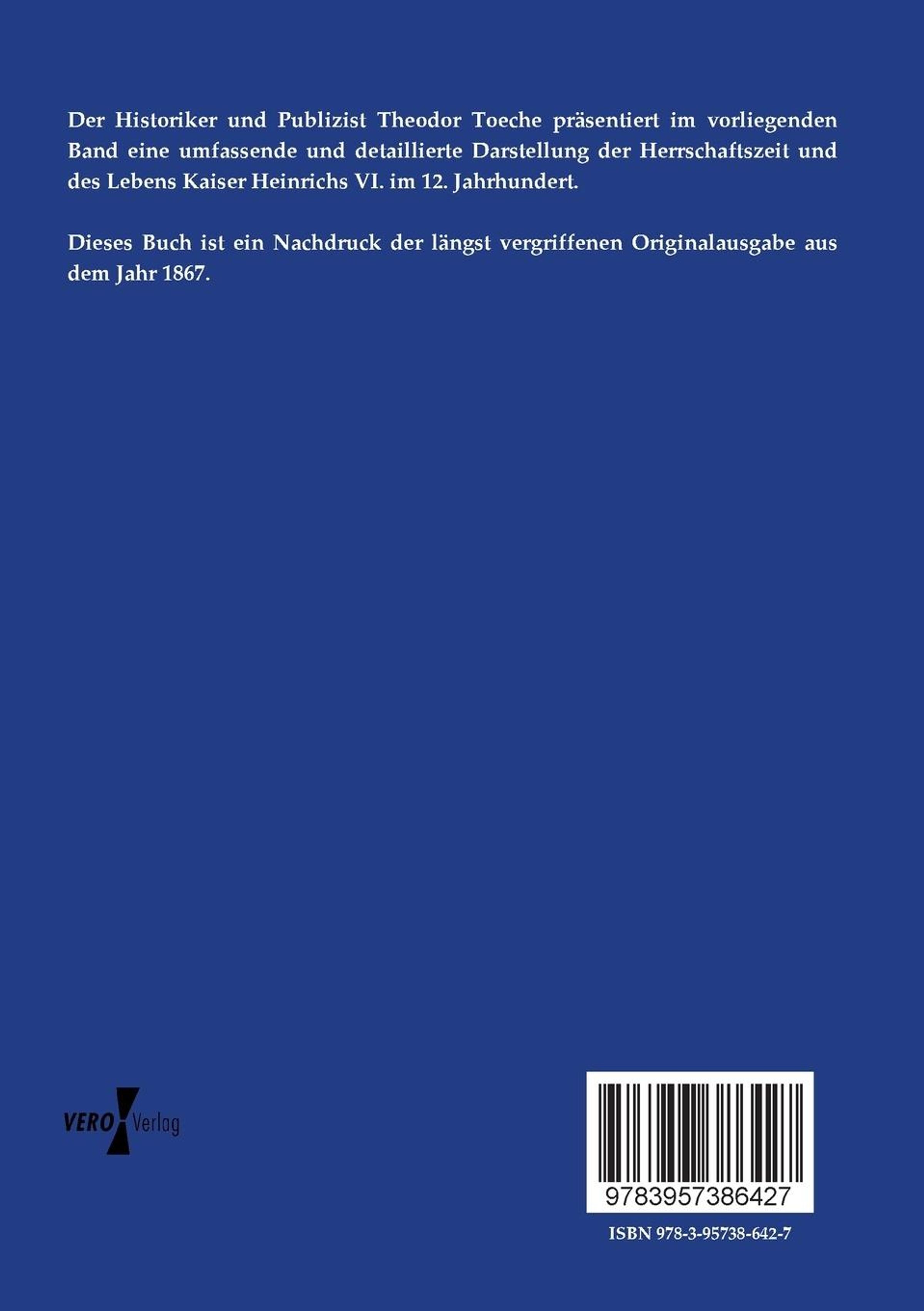 Der Historiker und Publizist Theodor Toeche präsentiert im vorliegenden Band eine umfassende und detaillierte Darstellung der Herrschaftszeit und des Lebens Kaiser Heinrichs VI. im 12. Jahrhundert.